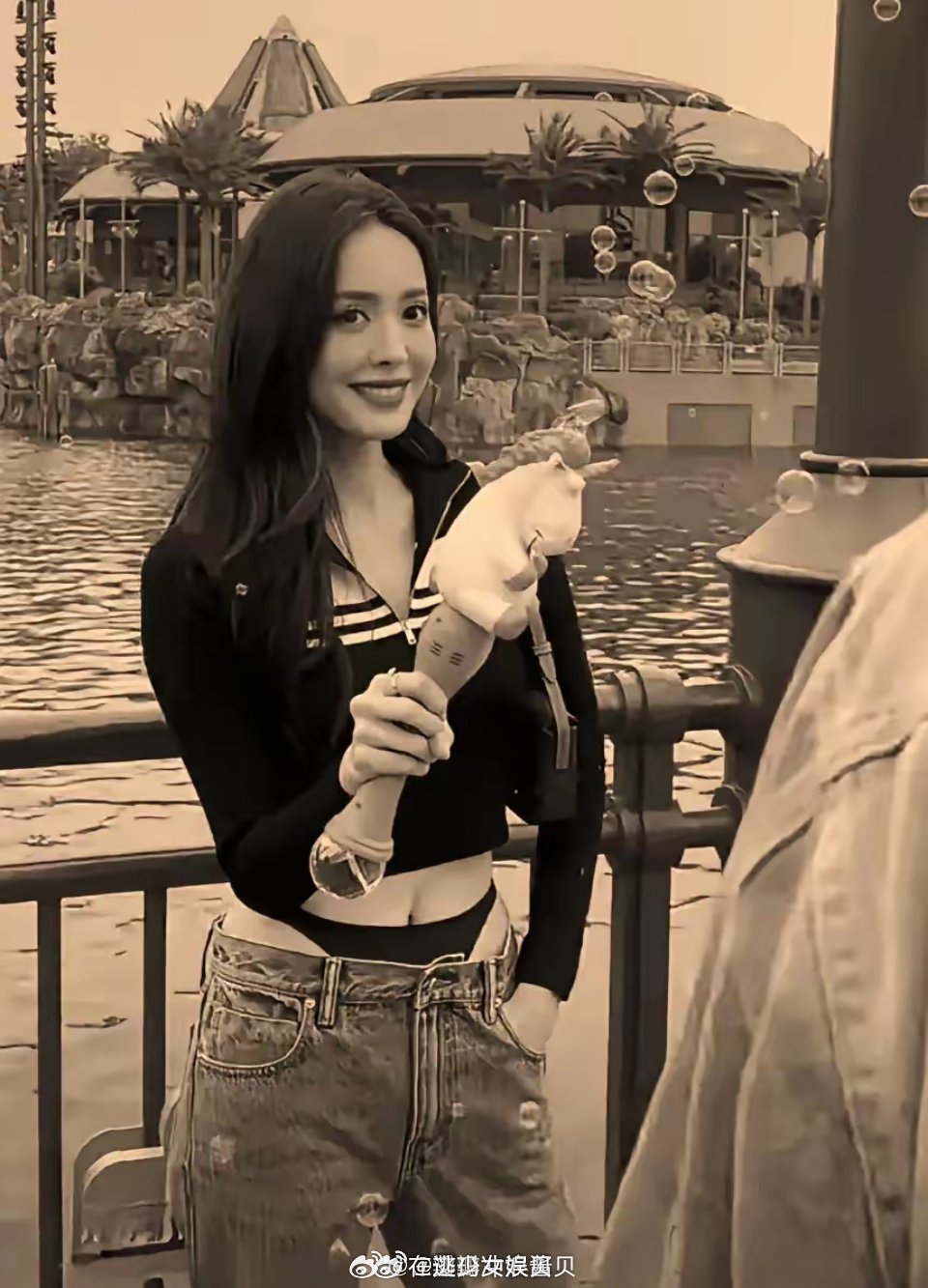 辛芷蕾居然这样穿吊带嬉水,真的会玩