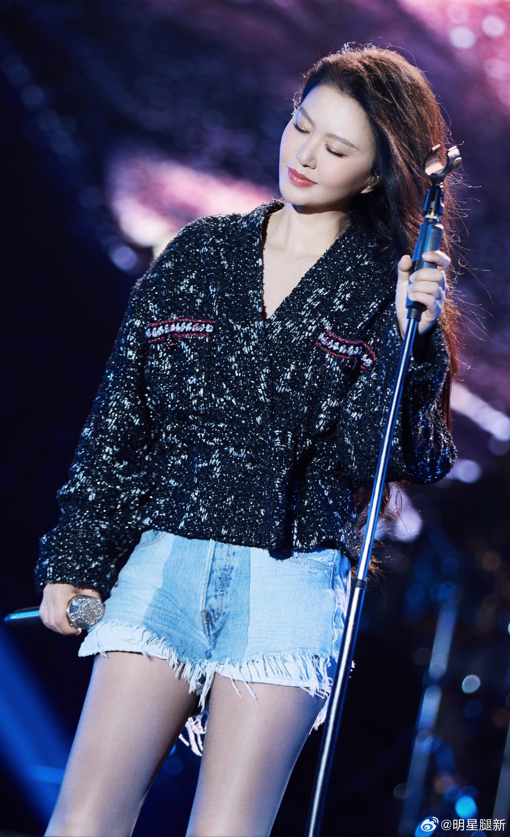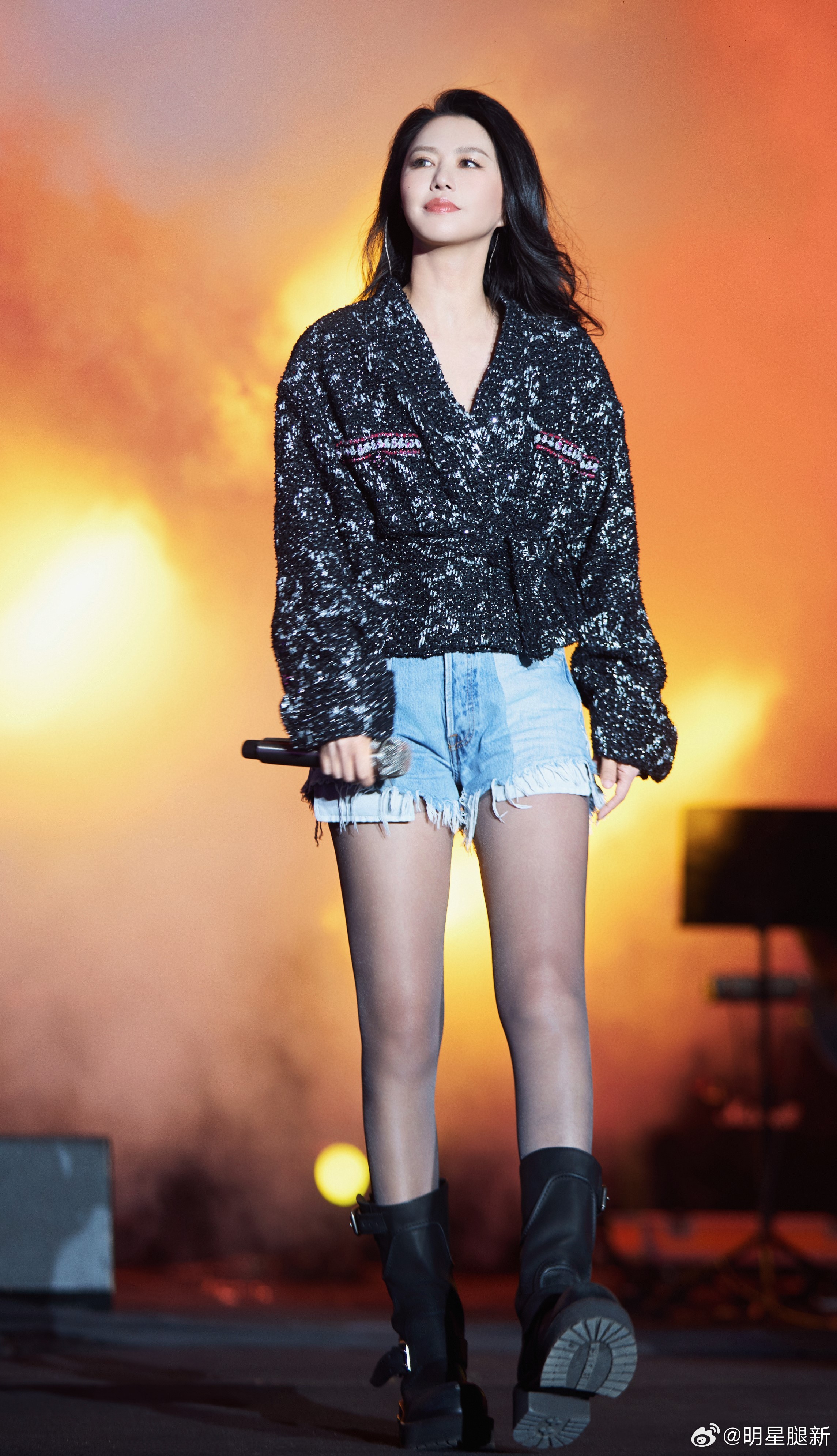 谭维维演唱会上穿牛仔热裤配超薄黑丝儿