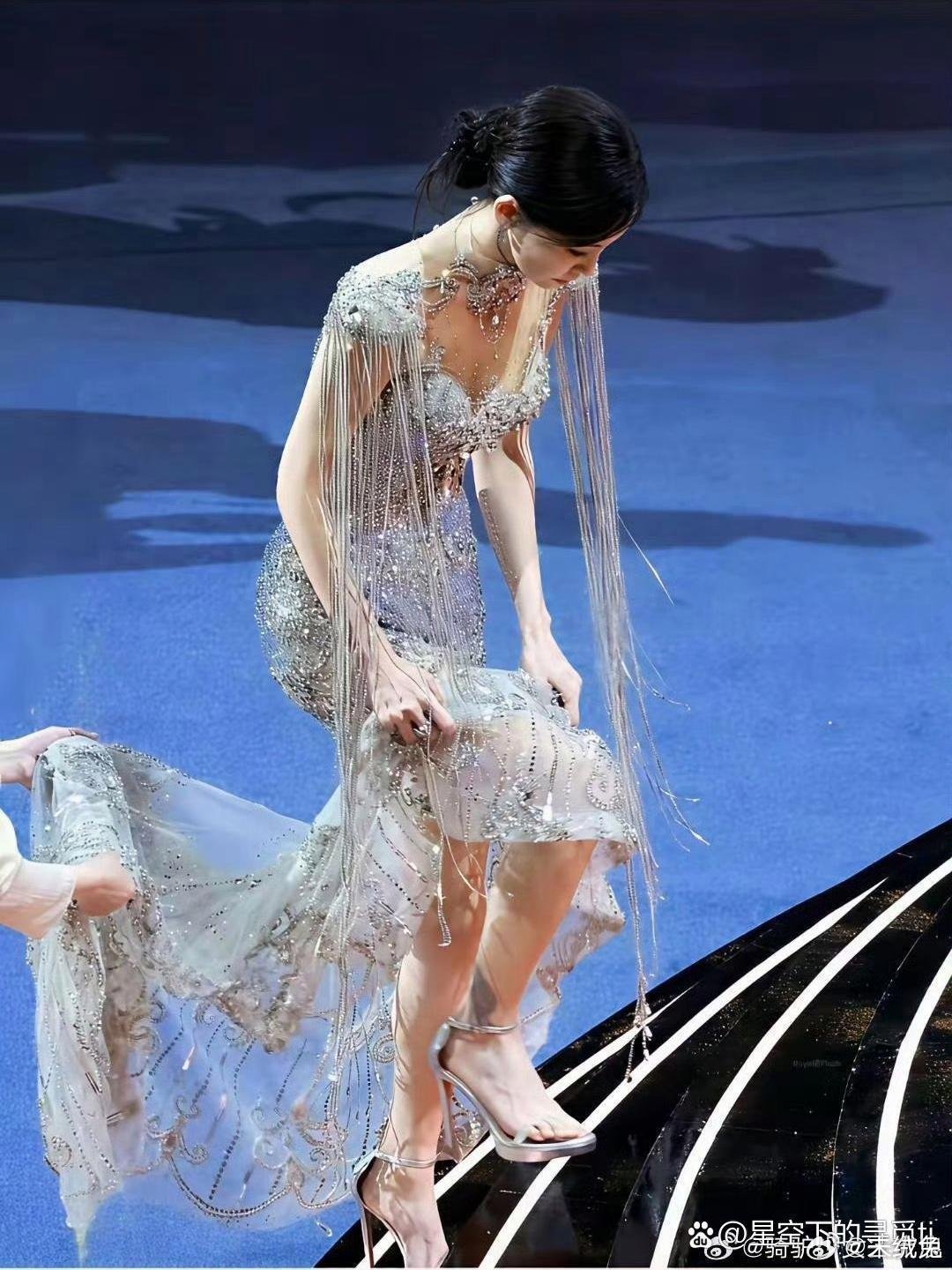 李一桐木格窗漏进的月光把亮片裙织成流动的河她斜倚在朱红的栏上发梢垂落,像