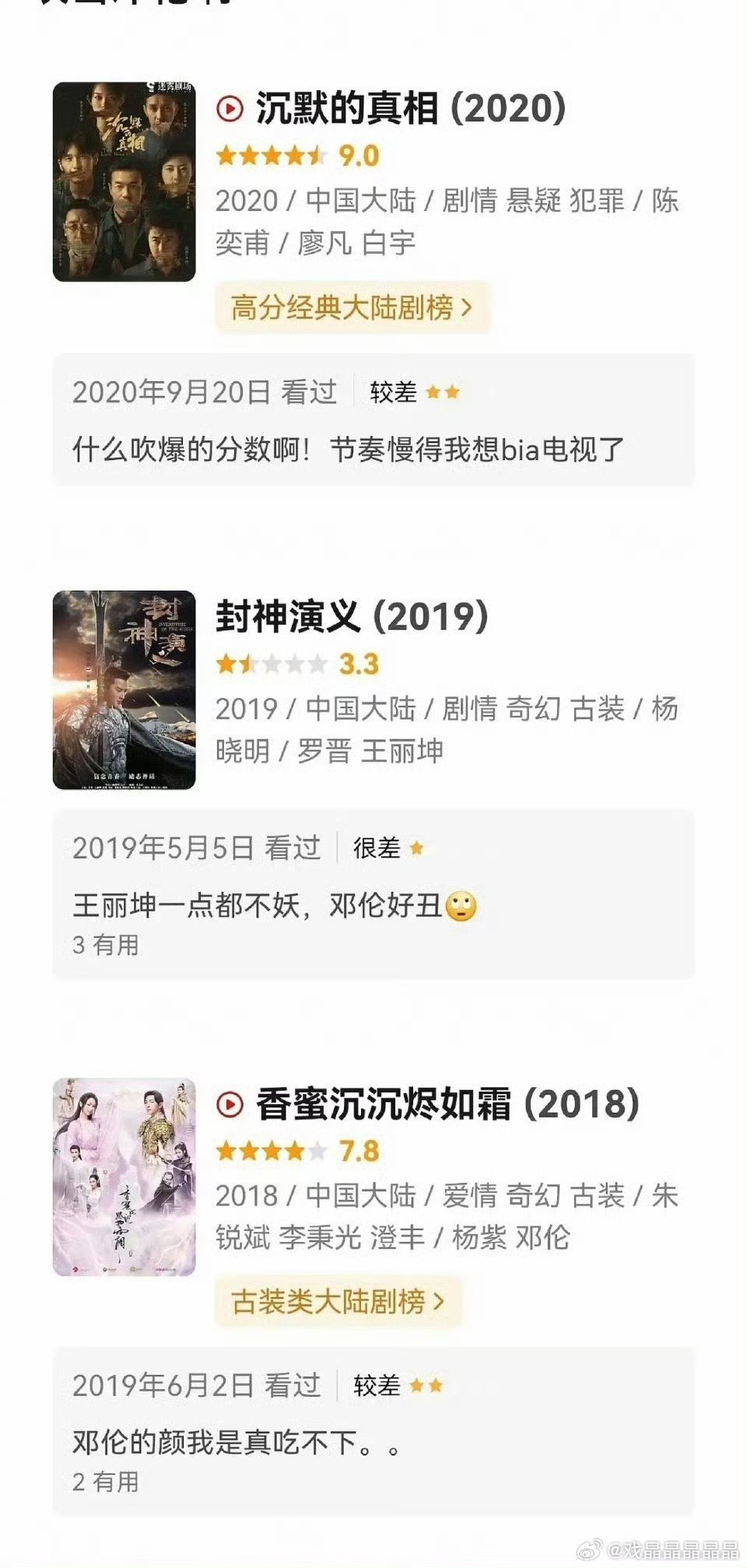 逐玉编剧 豆瓣打分疑似编剧曾珍的豆瓣号给好多剧打了一星。