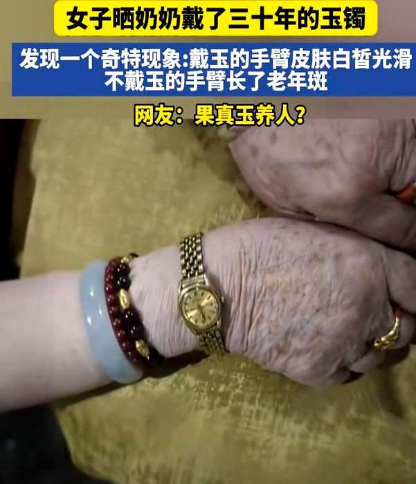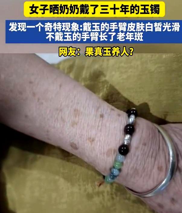 这下解释不清了! 云南一女孩回家闲聊,惊见奶奶戴了三十年玉镯的那只胳膊光滑几乎无斑,不戴镯的另一只却布满老年斑,像两个人的手臂。 网友分成两派:有人直言“玉养人”,有人指出镯子遮阳、佩戴冰凉还能促进局部血液循环。 进一步查阅又说玉含微量矿物质可能有利皮肤。 更现实的解释应当是物理遮挡与长期生活习惯的叠加,而情感记忆把这件饰品变成了护身符。 珠宝的故事暖人,却别把暖意当成科学结论——