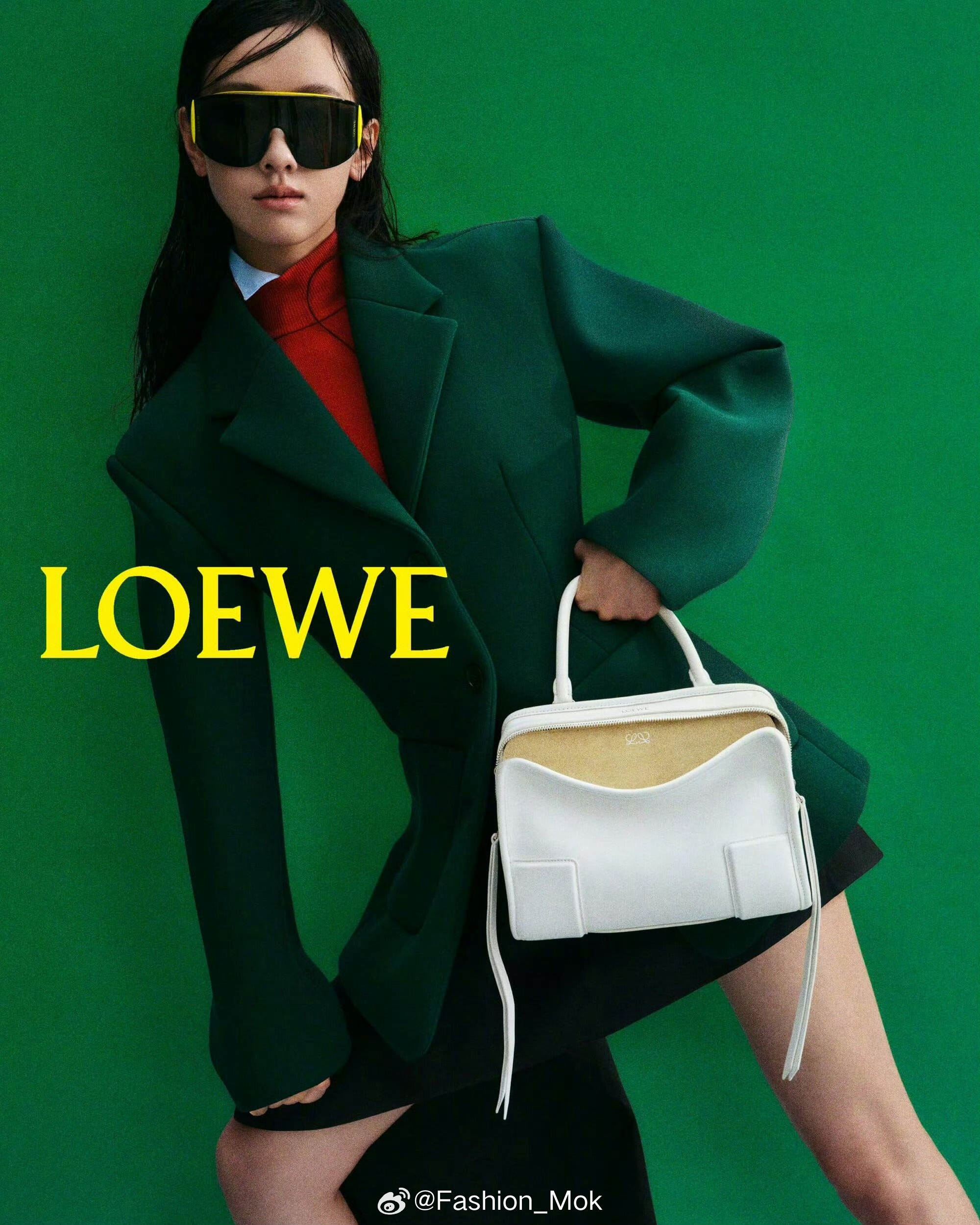 MOK_StarStyle LOEWE 2026春夏系列绿色廓形收腰外套+红色内搭