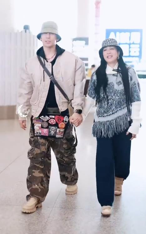 最近钟丽缇和张伦硕手牵手现身机场,两位看上去特别的恩爱,而且极为般配。 钟丽缇里面穿白色衬衣,外面搭配绣着古典纹样的针织衫,两件衣服叠穿的效果很不错。 她下身穿黑色裤子,脚踩复古风运动鞋,看上去有种活力满满的感觉。 钟丽缇的身段是极为苗条的,头戴漂亮的渔夫帽,还留着超美的披肩长发,尽显淑女风情。 张伦硕里面穿黑色连帽卫衣,外面套着米色的夹克,下身穿迷彩风格的工装裤,显得又酷又潇洒。 他脚踩浅色的工装鞋,头戴浅色渔夫帽,看起来像个街头少年。