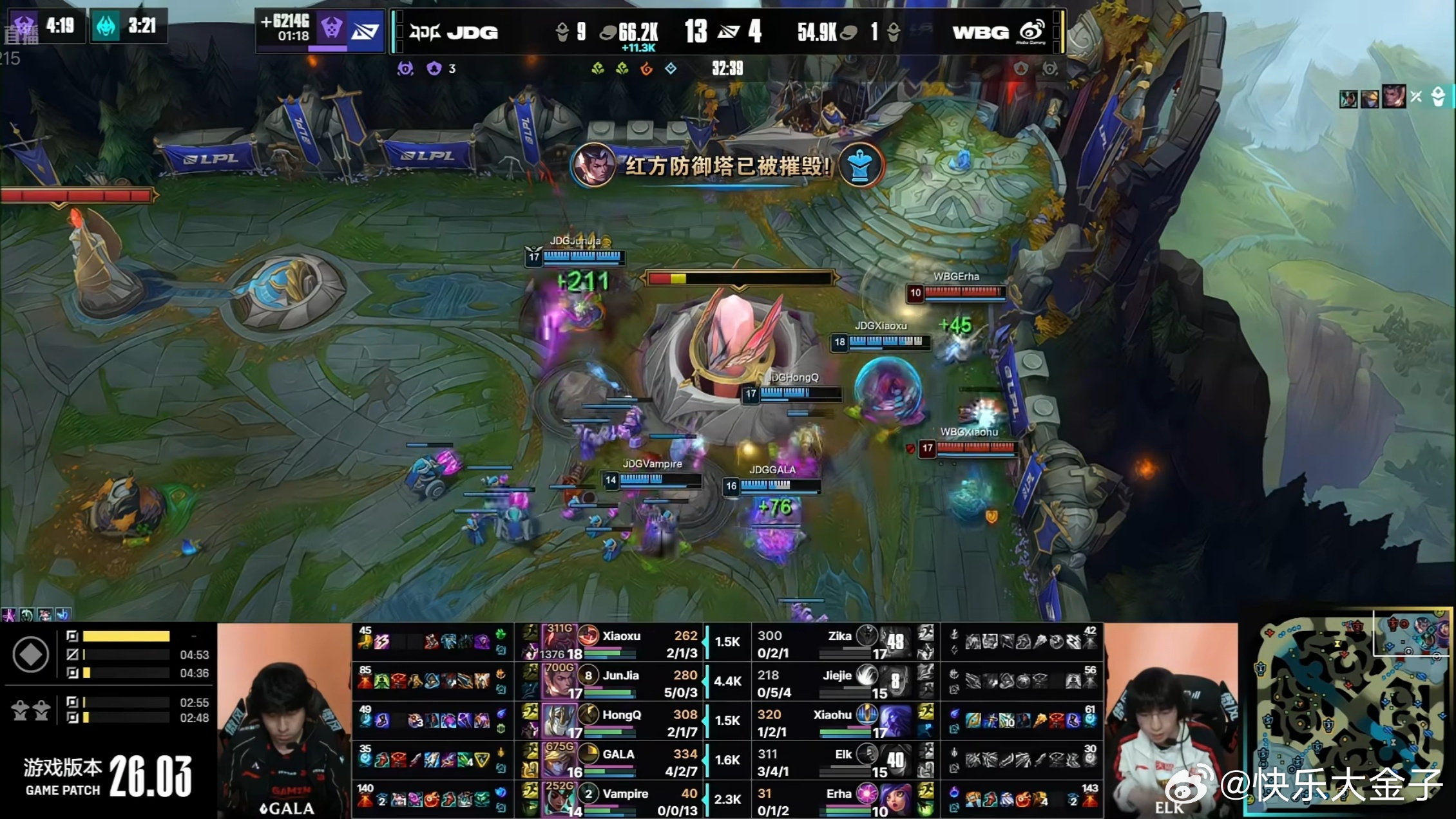 JDG好扎实的阵容和运营,比起一场胜利,这场更重要的是心态上的折磨,九座防御塔+资源全控,几乎没给留下喘息的机会。WBG对战JDGJDG