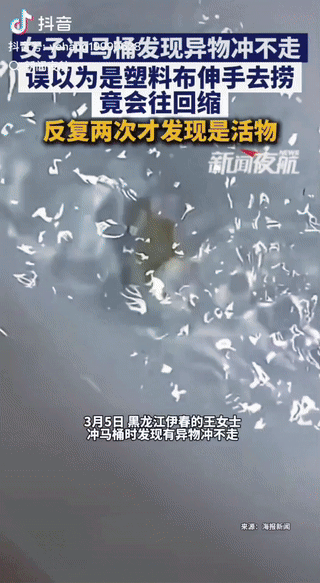 这也太吓人了! 近日,黑龙江一女子上完厕所后冲水,发现拐弯处卡着一块软塌塌的东西怎么冲都冲不掉,女子以为是一块抹布,就伸手去抓,没想指尖一碰对方就缩回去了,很明显对方是一个活物,女子当场吓得腿软。之后女子听从网友建议,挂了一块肉引诱,但那活物死活不肯出来。这到底是什么活物呢?躲在马桶里也太可怕了吧。 (来源:新闻夜航、AHTV第一时间) 3月5日,黑龙江伊春,王女士在家上完厕所后,像往常压水冲马桶,却发现下水口拐弯处卡着一块软塌塌、灰褐色的东西,怎么冲都冲不掉。 王女士当时也没在意,一眼看过去以为是一块抹布或塑料袋,就没做任何防护,直接徒手就去抠了。没想到,手指尖刚一碰到那东西,那东西就突然往管道里面缩了。 起初,王女士为以为是水流的原因导致那东西回缩,于是又尝试着用手去碰,不料那异物依然一碰就缩。 对方竟然真是一个活物?! 后知后觉的王女士这才完全反应过来,吓得身子陡然打了个激灵,双腿发软,心脏怦怦直跳,还好自己已经上完厕所了,不然对方突然窜出来咬自己P股,后果真是不堪设想。 那究竟该怎么办呢? 这时,心有余悸的王女士灵机一动,颤抖着双手拍下了一段视频发在网上求助万能的网友们。 很快有网友回复了,王女士便按照网友提议,用一小截筷子挂了一小块猪肉搭在马桶拐弯处,以引诱那只活物出来。 没想到,那只活物狡猾得很,死活都不上当,就是不肯出来,还反而往回缩得更深了,藏匿得更加隐蔽了。 王女士无奈,只得拨打119联系专业人员上门帮忙抓获,但无论尝试多种办法,都没将那活物从管道里弄出来。 从其头型与颜色看,它很可能是一只小蛇。 马桶与下水管道弯道多、空间又窄,蛇可以灵活躲避,加之受惊后高度警惕就更不肯被引诱或捕捉到。如果采用破管、砸墙等大规模行为来捕捉,那成本就太高了。 还有,那只蛇不可能一直呆在马桶下水口拐弯处,它是会一直游走的,因此它也很可能会顺着排污管爬走了,因此也不用过多担心与害怕。 对此,网友们议论纷纷~ 有网友说,这真是太可怕了,弄得我都不敢上厕所了。每次上马桶哪怕再急我都先要冲冲厕所,确认没有异常情况才敢上。 也有网友说,这名女子还是很幸运的,那只小蛇缩回去而不是开头咬。但还没有弄出来依旧有安全隐患。可不可以烧一盆开水冲下去,或倒10斤高度烈酒下去呢? 那究竟那是一只什么蛇呢,有毒无毒呢? 从那蛇的三角头、灰暗颜色等判断,很可能是伊春本地常见的赤链蛇或乌梢蛇,无毒,喜欢窜管、窜下水道竺,但成年蛇难钻马桶拐弯处,王女士家马桶里这只很可能是一只幼蛇。但也有可能是本地常见的乌苏里蝮,喜欢春季出蛰,喜欢钻缝隙等,特征与王女士家符合,不过它不仅有毒了还是剧毒,但概率低于前一种。 总之,最有可能是当地无毒的赤练蛇或乌梢蛇,极小概率是有毒的乌苏里蝮。但至于是哪一种蛇,目前还没有权威结果。 此案例给大家警醒:遇马桶异物堵塞,千万不要徒水去通,要先戴上防护手套用工具去接触。如果遇上活物,最好远离,联系专业人士去处理,以免造成伤害。 而对于文中这种情况,其实也有一个办法可避免:可在马桶下水口加装防臭防返溢止回阀,这样也可以减少活物进入马桶的风险。 如今,天气渐暖,很多冬眠的小动物也复苏了,有些活物还喜欢钻下水道、钻马桶等,大家一定要多加防范,切记安全第一。