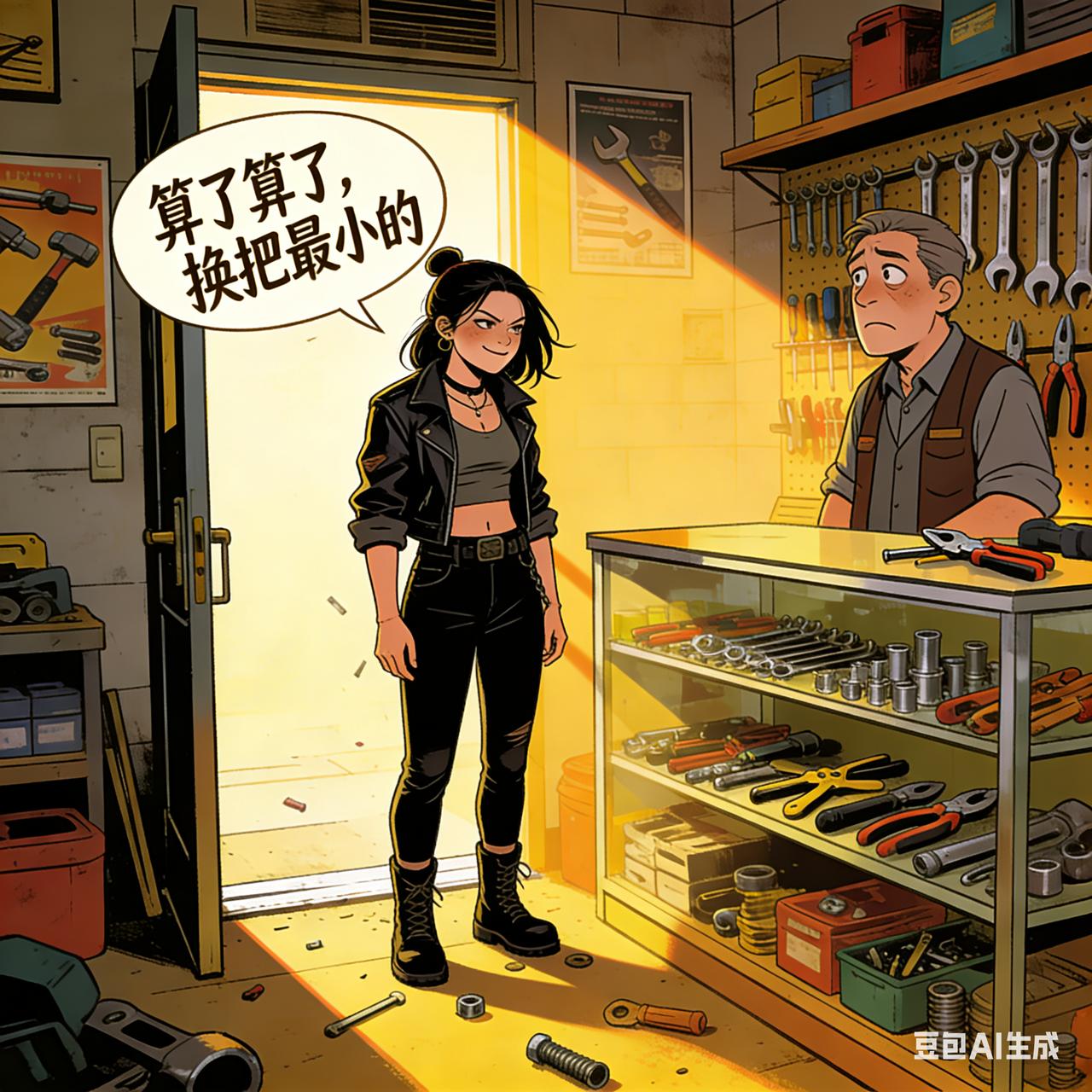 女流氓踹开五金店门,往柜台上一拍:“老板,来把最硬的锤子!” 老板指了指墙角的大铁锤:“姑娘,这锤子能砸开钢筋,够硬不?” 女流氓眯眼瞅了瞅,突然憋笑:“算了算了,换把最小的。” 老板纳闷:“刚才不是要最硬的?” 女流氓挠挠头,憋不住笑:“刚跟对象吵架,本来想扛把大的去砸他门锁,走到半路想通了——他那破门锁,用指甲盖都能抠开,犯不着浪费锤子。” 说着拎起小锤子揣兜里,转身时嘟囔:“不过带把小的防身,万一他敢动手,我敲他脑壳……呃不是,敲他脚边地板吓唬吓唬就行。” 老板看着她风风火火的背影,低头乐了——这哪是买锤子,分明是给台阶找个借口嘛。