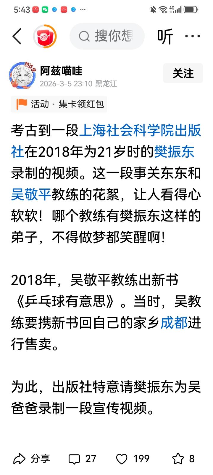 这个樊振东的铁粉阿兹喵哇,整天夸吴敬平教练是樊振东的教练,王涛,德国俱乐部的王志都是樊振东的好教练,和樊振东有共识,否认刘国梁,王皓是樊振东的教练,两届奥运会东京银牌,巴黎金牌,都是在刘国梁和王皓一起带他获得的,特别是王皓两届奥运会他为樊振东付出多少金牌就是证明,铁粉们睁着眼睛说瞎话。 没有刘国梁和王皓没有樊振东的辉煌成就,粉丝们故意否认,是对你的偶像好吗?