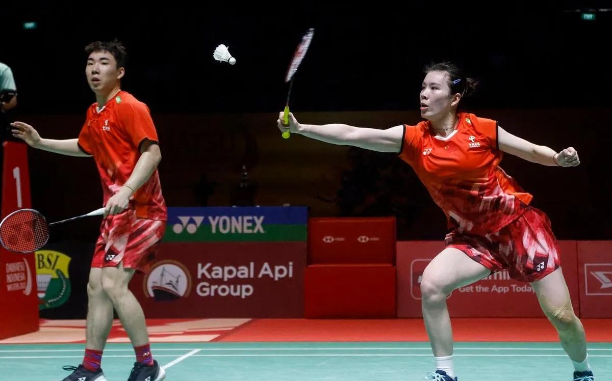 刚刚结束了一场2026年全英羽毛球公开赛混双半决赛较量,混双卫冕冠军、世界排名第6的囯羽组合郭新娃/陈芳卉,苦战到决胜局,1-2(21-11,18-21,12-21)不敌世界排名第5的法国组合吉凯尔/德尔吕,止步混双四强,无缘混双决赛。 娃卉组合第2局前半段领先,没有拿下比赛,有点可惜。 法国组合延续了上一场的火热状态,闯进决赛,下一场静候邓俊文/谢影雪和叶宏蔚/詹又蓁的胜出者。