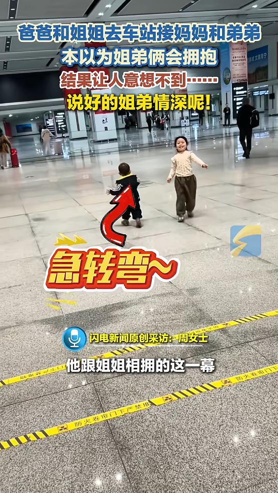 “笑不活了!”近日,广西南宁,一男子带着女儿去车站,接自己的妻子和小儿子,姐弟俩在车站一见面,就向对方张开双臂奔跑,本以为他们是想念对方,要来个热情拥抱,没想到姐弟俩直接擦肩而过,各自跑去拥抱父母!网友:差点以为交换人质! 这年头见过不少接站的场面,但像这样的"神操作",我还真是头一回见。 南宁某车站出口,人来人往。两个小身影突然动了,弟弟眼尖,一眼就从人堆里认出了姐姐,胳膊猛地张开,那架势像是要把全世界都抱进怀里。姐姐也几乎在同一秒做出了一模一样的动作。 接下来的画面,简直就是教科书级别的"久别重逢"预告片:两人开始狂奔,速度越来越快,距离从十米缩到五米、三米、一米…… 站在旁边的父母都屏住了呼吸,等着看这场感人至深的姐弟拥抱。毕竟好久不见了,这俩孩子怎么也得来个热泪盈眶的团圆时刻吧? 两人在即将撞上的那一瞬间,像是被什么精密程序提前设定好了似的,直接擦肩而过!弟弟越过姐姐,继续往前冲,一头扎进爸爸怀里,嘴里喊着"爸爸"。姐姐也没停步,反向奔向妈妈,一把抱住她说"我爱你"。 整个过程如行云流水般顺畅,毫无一丝犹豫之态。其目光之中,仿若空无一物,全然未将对方放在眼里,那份决绝,令人惊叹。 妈妈当场就愣在那儿了。她在车上还特意跟儿子交代过,"爸爸和姐姐会来接你",满心以为这姐弟俩好久不见,怎么着也得来个热情拥抱、说几句想念的话。结果呢?这俩孩子像是提前在微信群里商量好了似的,各奔各的目标,连个眼神交流都没有,更别提什么拥抱了。 网友看完这段视频直接笑疯了:"这是交换人质现场吧?""塑料姐弟情实锤了!""萝卜青菜各有所爱,儿子爱爸爸,女儿爱妈妈,逻辑完美,无懈可击。""这配合默契得像演练过八百遍。" 妈妈在车上说的那句"爸爸和姐姐会来接你",早就在儿子脑子里种下了一颗种子,爸爸在场!对一个小男孩来说,这个信息的优先级显然高过姐姐好几个档次。而姐姐呢?她在车站出口频繁张望的时候,可能压根儿不是在找弟弟,而是在搜索妈妈的坐标。 所以当两人同时张开双臂奔跑的时候,他们的导航系统其实早就锁定了各自的终点。姐弟只是恰好站在了彼此的路径上,擦肩而过不过是顺便完成的一个动作罢了,根本不值得停下来浪费时间。 这场景像极了一次"无缝对接"的人员交换行动。如果把四个人的位置画成坐标图,你会发现姐弟的交叉点恰好是父母连线的中点,他们从头到尾都没偏离过各自的轨道,精准得像是GPS定位。 父母的"哭笑不得",其实暴露了一个认知盲区:他们以为"从小感情深"就等于"分离必思念",特意安排了这场全家出动的接站仪式,期待上演一出温馨感人的"团圆大戏"。但孩子的世界里,情感偏好比成人想象的要直接得多、纯粹得多。平时在家打打闹闹、抢玩具抢零食是真的,关键时刻各奔东西、眼里只有爸妈也是真的。 这不是什么塑料姐弟情,只是在"稀缺资源"面前,孩子们的机会成本计算瞬间就完成了。久别重逢的时候,父母的怀抱才是他们真正想念的安全区,至于姐弟?那都是日常生活里天天见的"普通队友",哪有爸妈的怀抱来得珍贵? 这就是孩子的真实逻辑,简单、直接、不掺假。 信息来源:《“说好的姐弟情深呢!”爸爸和姐姐去车站接妈妈和弟弟,本以为姐弟俩会拥抱,没想到发生有趣一幕。》中国青年报