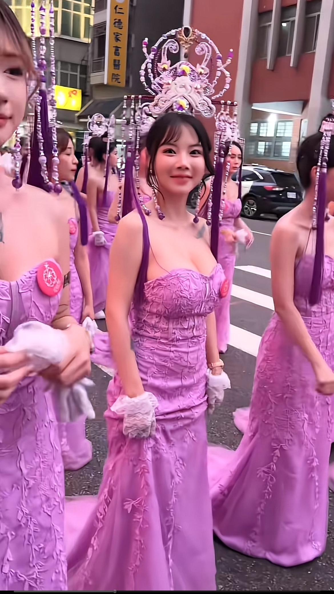 台湾庙会的美女仪仗队,那可真是别具一格。在台湾传统庙会上,“辣妹脱衣”表演、钢管舞等成了独特存在。像“妈祖绕境”这个台湾一年中最大宗教活动之一,堪称“庙会蹦迪”重灾区。每年3月妈祖诞辰日前后,百万信徒跟随妈祖轿子绕岛祈福,沿途热闹非凡。 在这期间,庙宇正门口或侧边会搭建定点舞台,衣着清凉的钢管舞女热舞不断,还有移动表演,舞团徒步或站在钢管舞车上。要知道台湾超1600万人信奉妈祖,占总人口比例极高,这样的庙会融合传统与新潮,也算是台湾特有的风景线了。