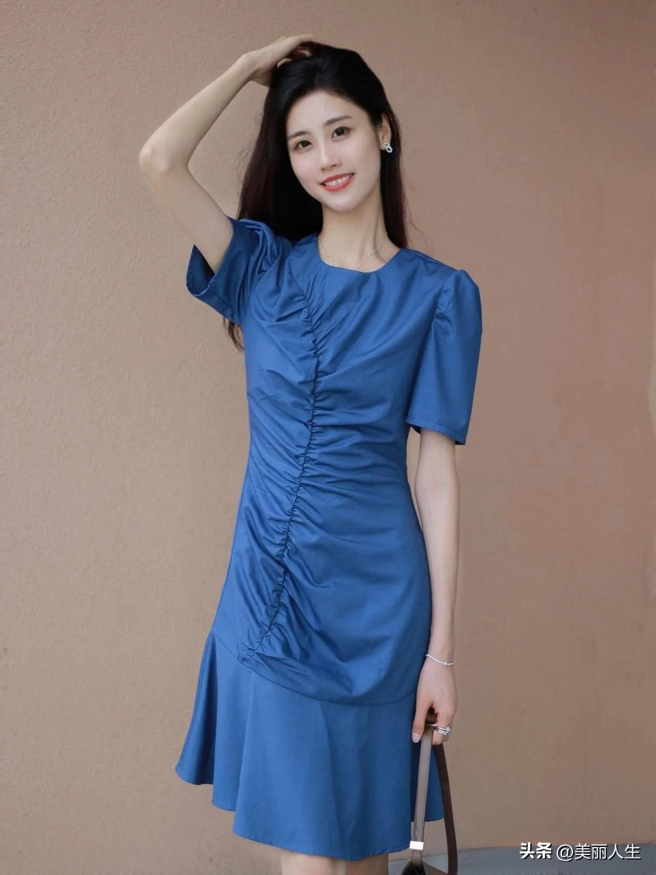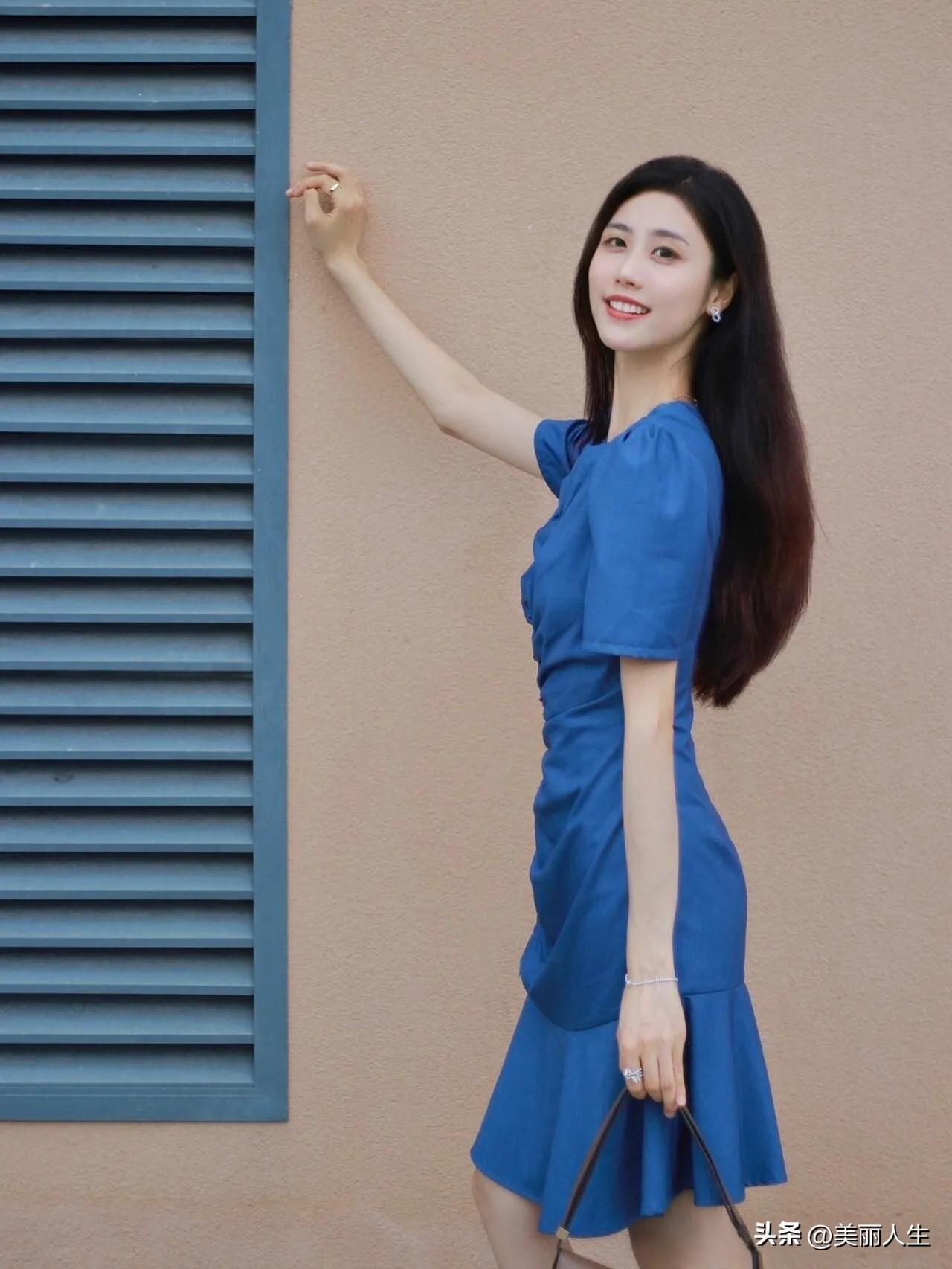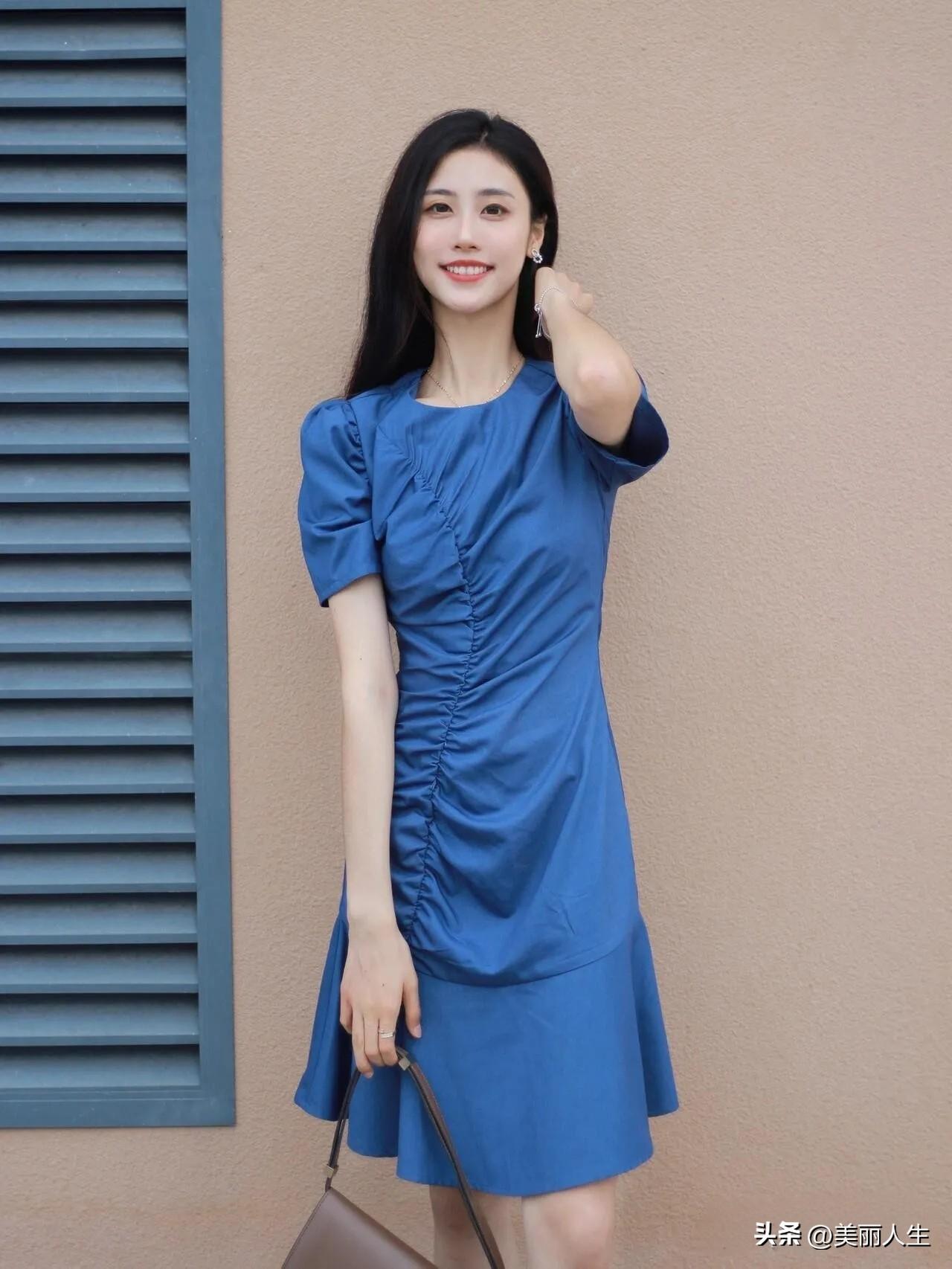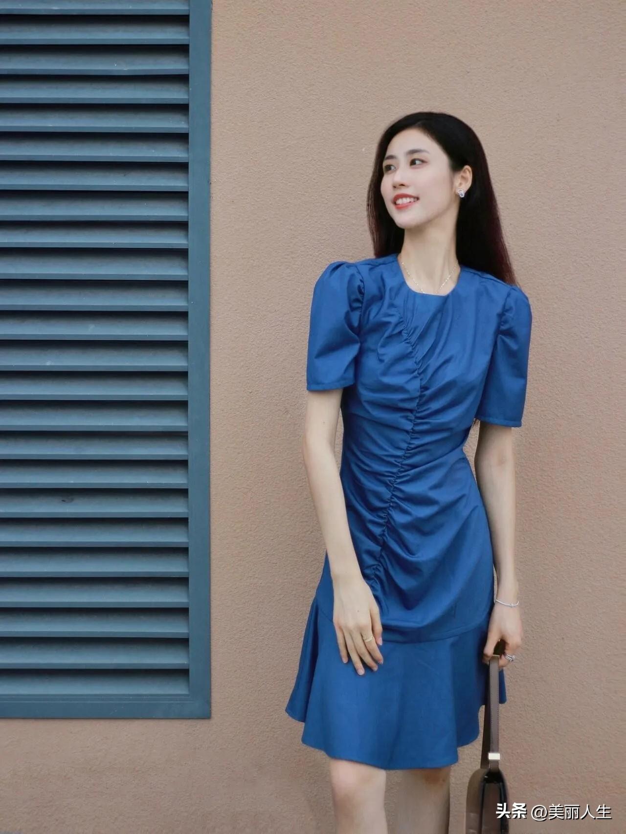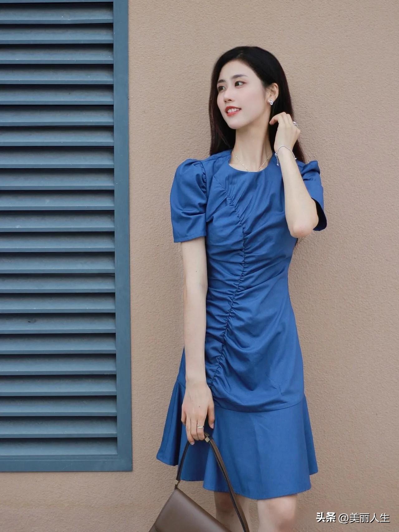 优雅气质穿搭,蓝裙+透视衬衫,时尚感满满!