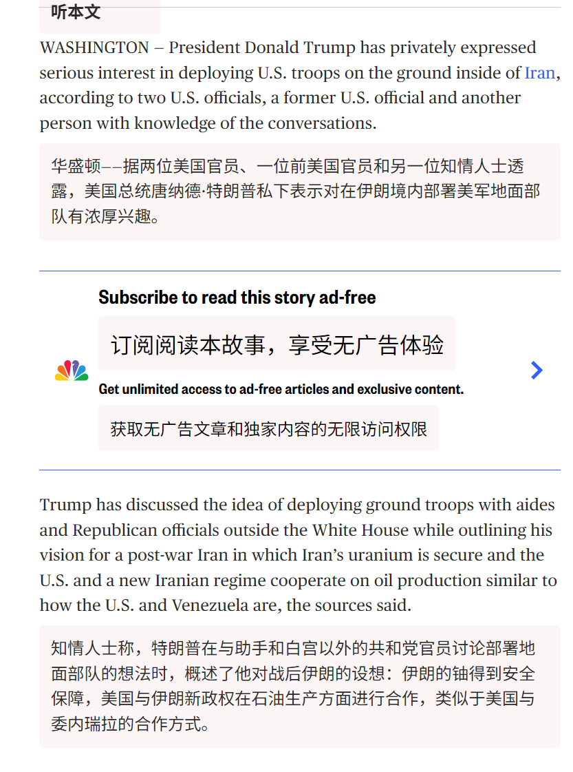 🔻NBC新闻:特朗普私下对在伊朗部署美国地面部队表现出浓厚兴趣。🔻你说儿豁?🔻你立字据!伊朗总统称不再首先攻击邻国伊朗不许美以相关船只通过霍尔木兹海外新鲜事中东现场直击