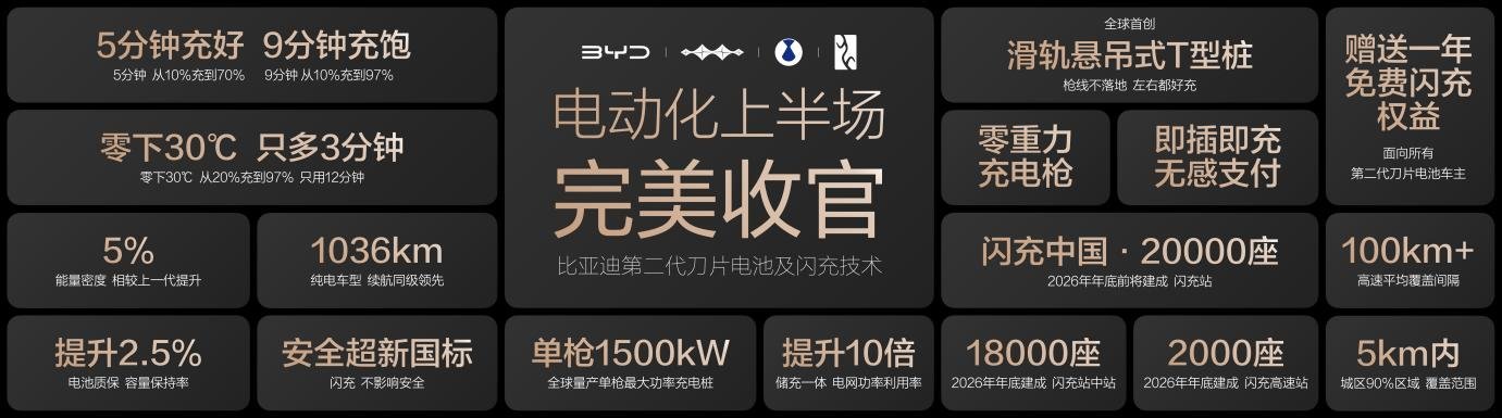 3月5日,比亚迪正式发布第二代刀片电池及闪充技术,宣告新能源汽车迈入“闪充时代”,用硬核闪充技术树立行业新标杆!这场以“闪充中国 改变世界”为主题的发布会,彻底攻克了电动化上半场“充电慢”与“低温充电难”两大顽疾。比亚迪第二代刀片电池