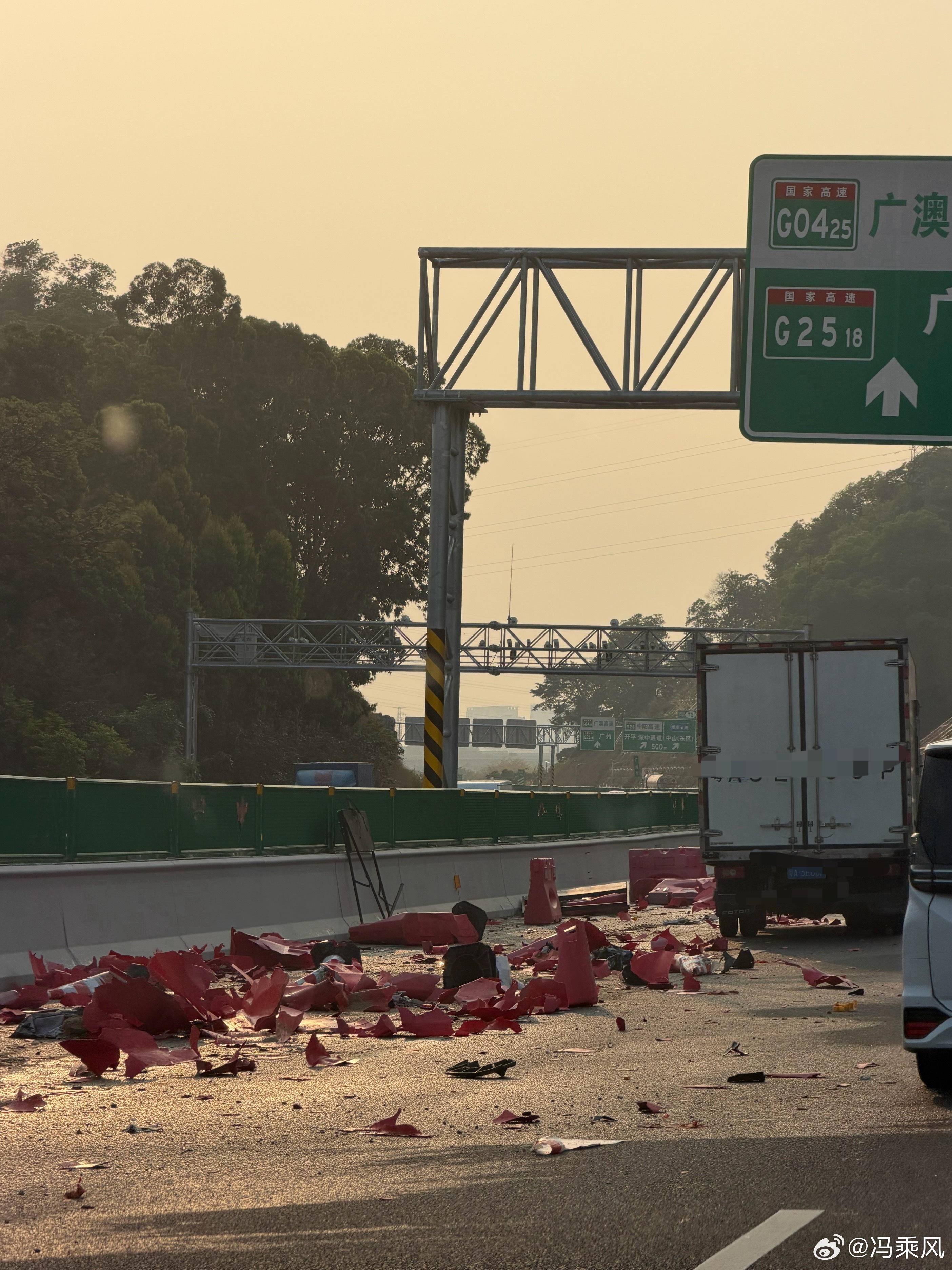 道路千万条,安全第一条。目睹事故现场。。。护栏撞稀碎。中山·广澳高速