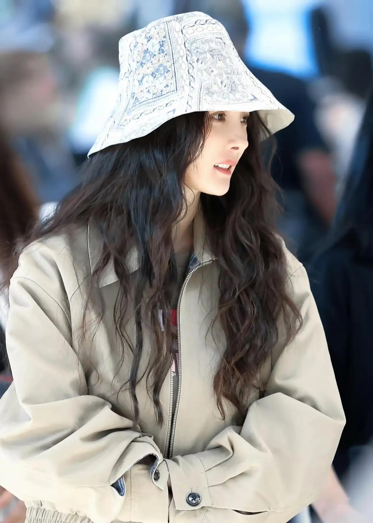 杨幂机场照曝光,美的令人陶醉! 网友在泰国机场偶遇杨幂,并拍照记录下这美好的时刻! 镜头下的杨幂身穿土黄色休闲外套,下搭配蓝色牛仔裤,长发披肩,头戴花色八角渔夫帽,化着精致的的妆容,皮肤超好,保养的真好,看起来像20岁的年龄!