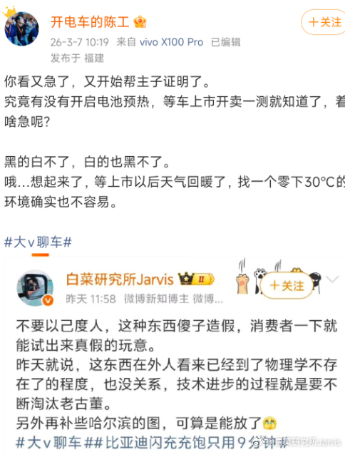 哈哈哈,这理解能力,我第一句话的意思不就是不怕消费者试吗?至于后面,等待的时间长不知道对谁更有利,明年能测的时候,你们就装作忘了。放心,到时候我再帮你贴出来就是了。 话说陈工还是太有追求了,一边追求老外高溢价购买证明认可度,一边天天批判老外最爱高溢价购买、最引领全球新能源汽车标准向的中国品牌,这高标准严要求,可以的。