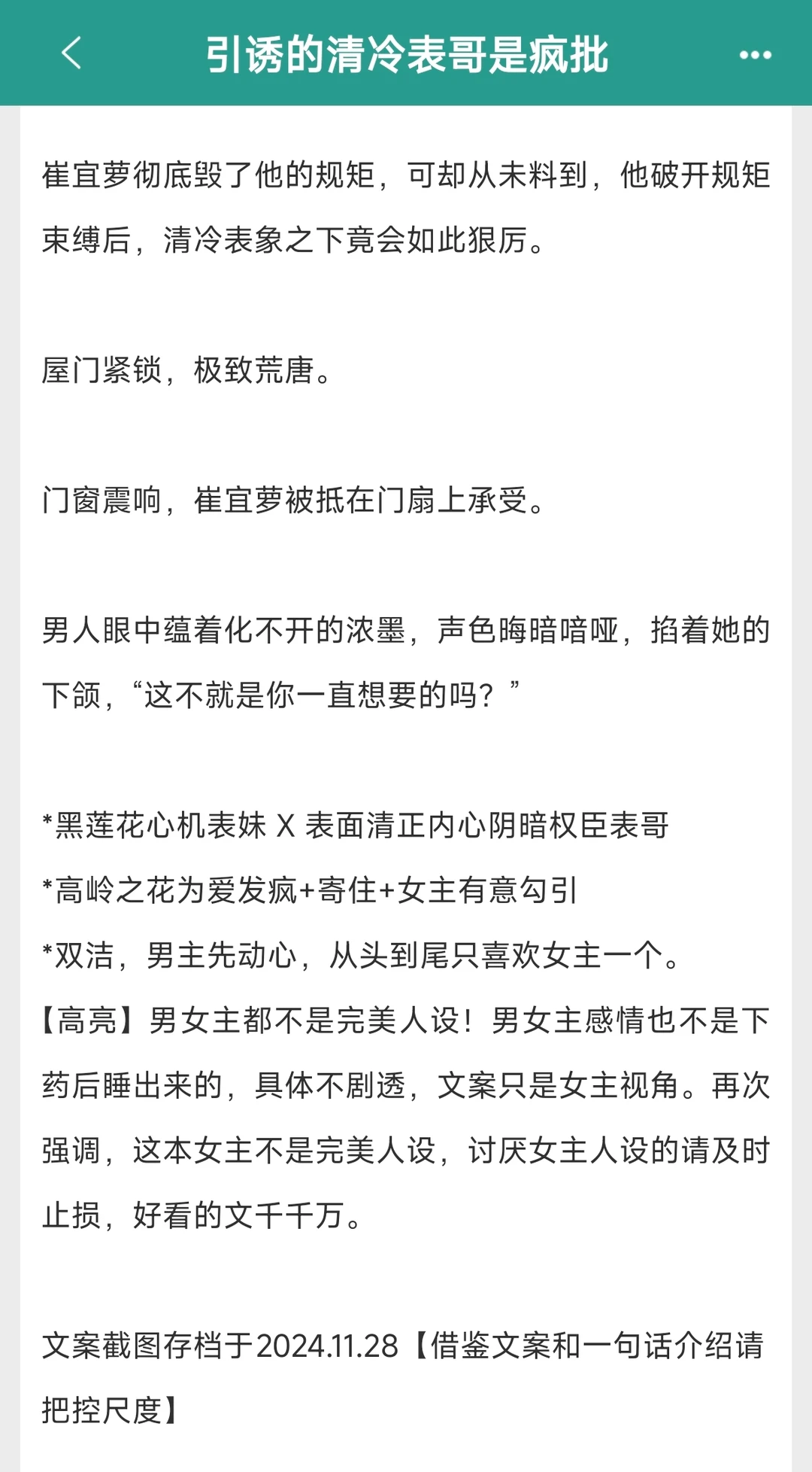 [仙女R]《引诱的清冷表哥是疯批》by凝微 [仙女R]字数约40万字 [仙女R]标签:疯批 救赎 谷香四溢 文荒可看 [仙女R]推荐指数:[星R][星R][星R][星R]