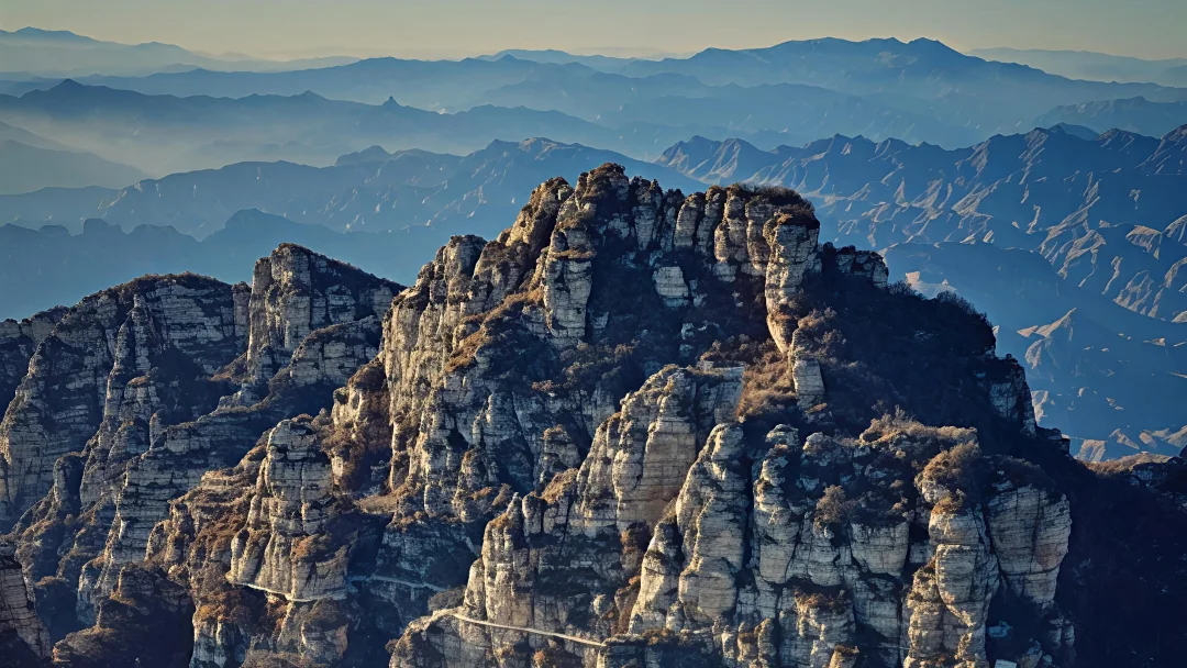 2. 太行之首观景台:奇石如兽群🐅,下午3点阳光斜照超出片,穿浅色衣服更显仙✨