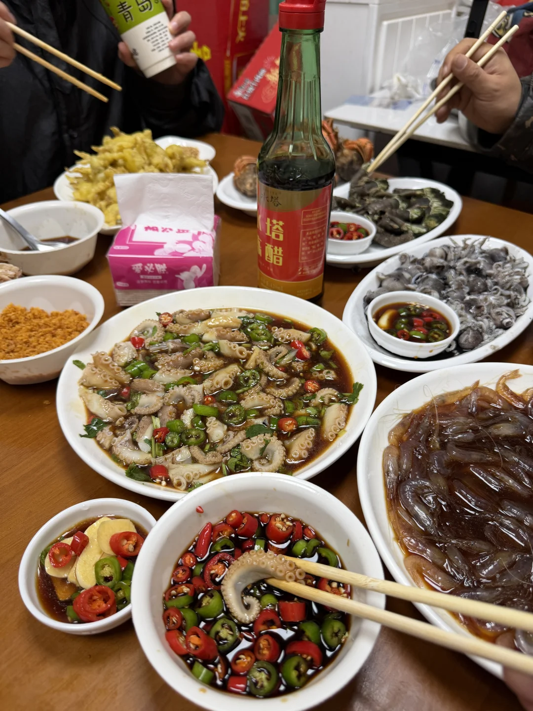 青岛本地人推荐的店~新鲜又便宜诚不欺客~ 香辣蟹、皮皮虾,招牌必点!太好吃了~ 海肠捞饭不愧是青岛牌面!真的巨鲜巨好吃,明码标价放点~ 生腌、白灼,真的是怎么弄怎么好吃!尤其是那个小白虾,好脆,口口爆汁!真爽! 海鲜面也好吃!汤非常的鲜!