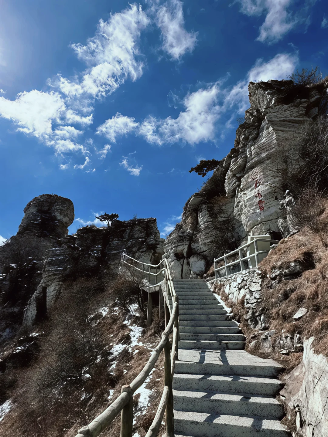 👉 3月7-8号免门票啦!🎫 巍峨的白石山藏着刚融化的雪❄️,阳光洒在红色刻字巨石上,像一幅会发光的水墨画🖼️。