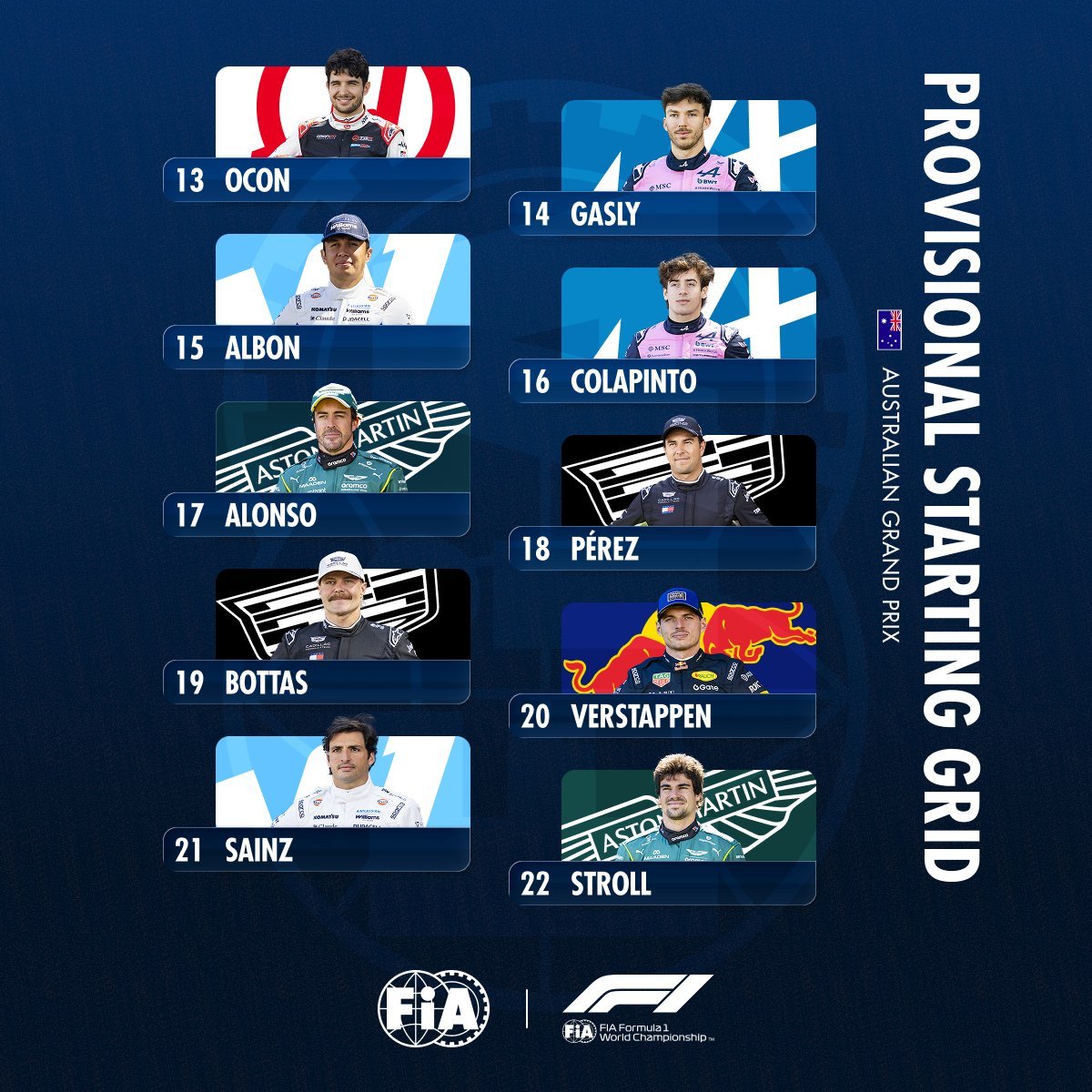 2026f1澳大利亚大奖赛 正赛初版发车顺位