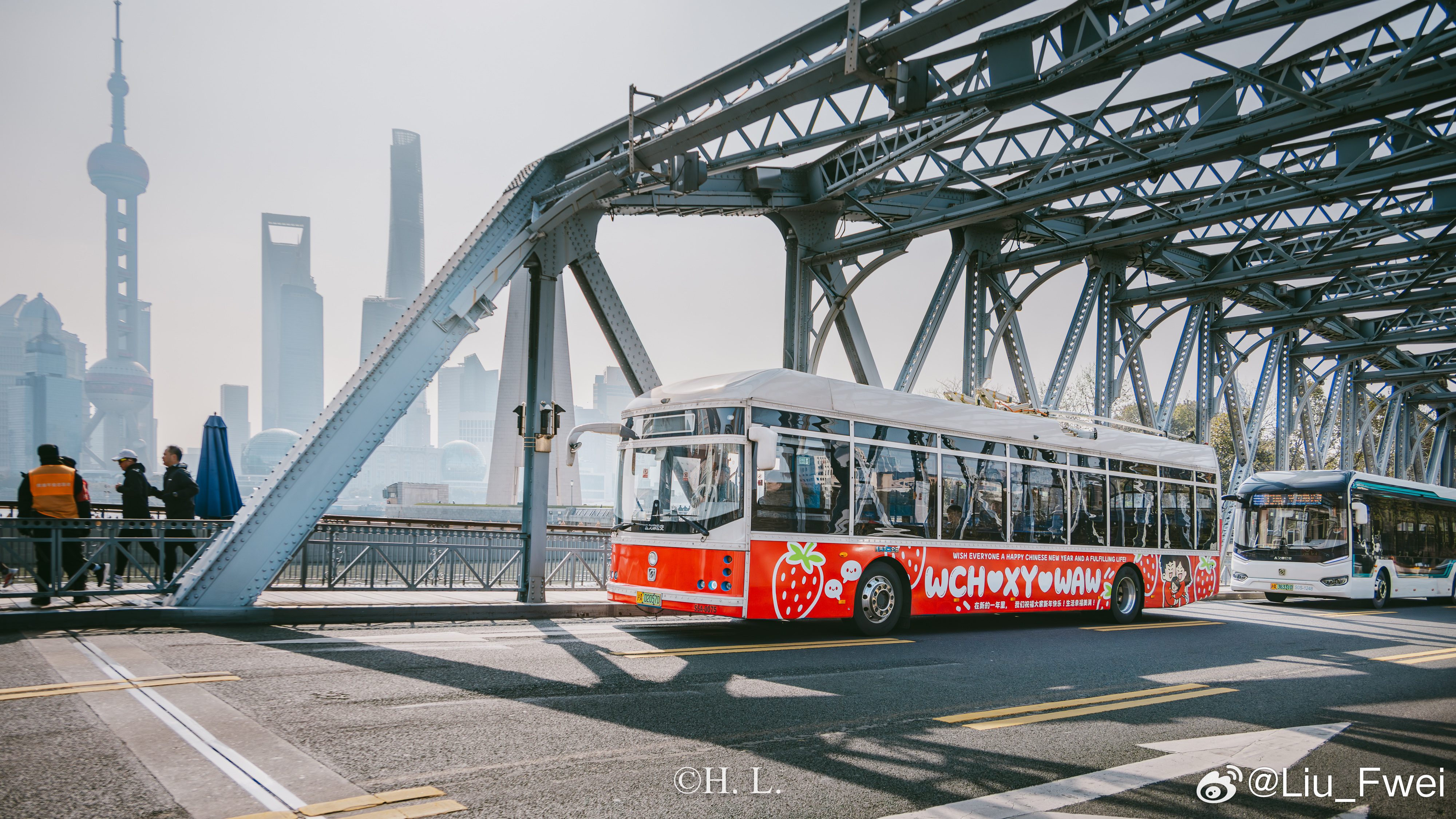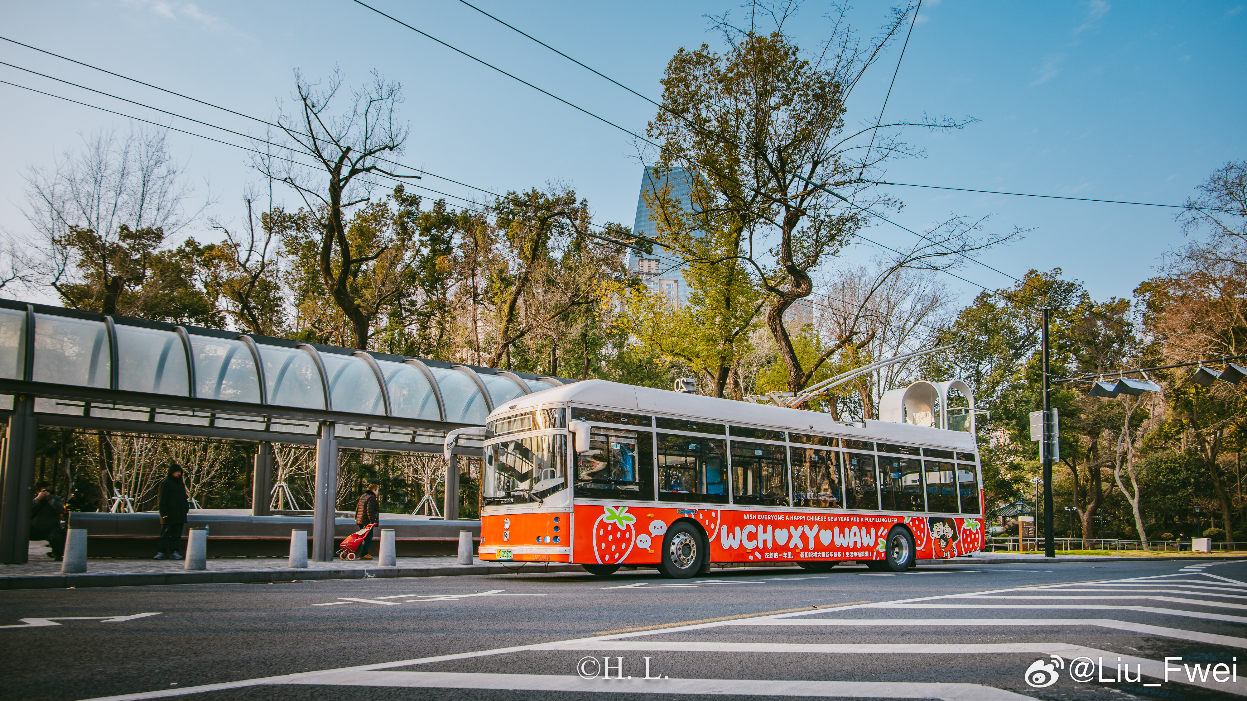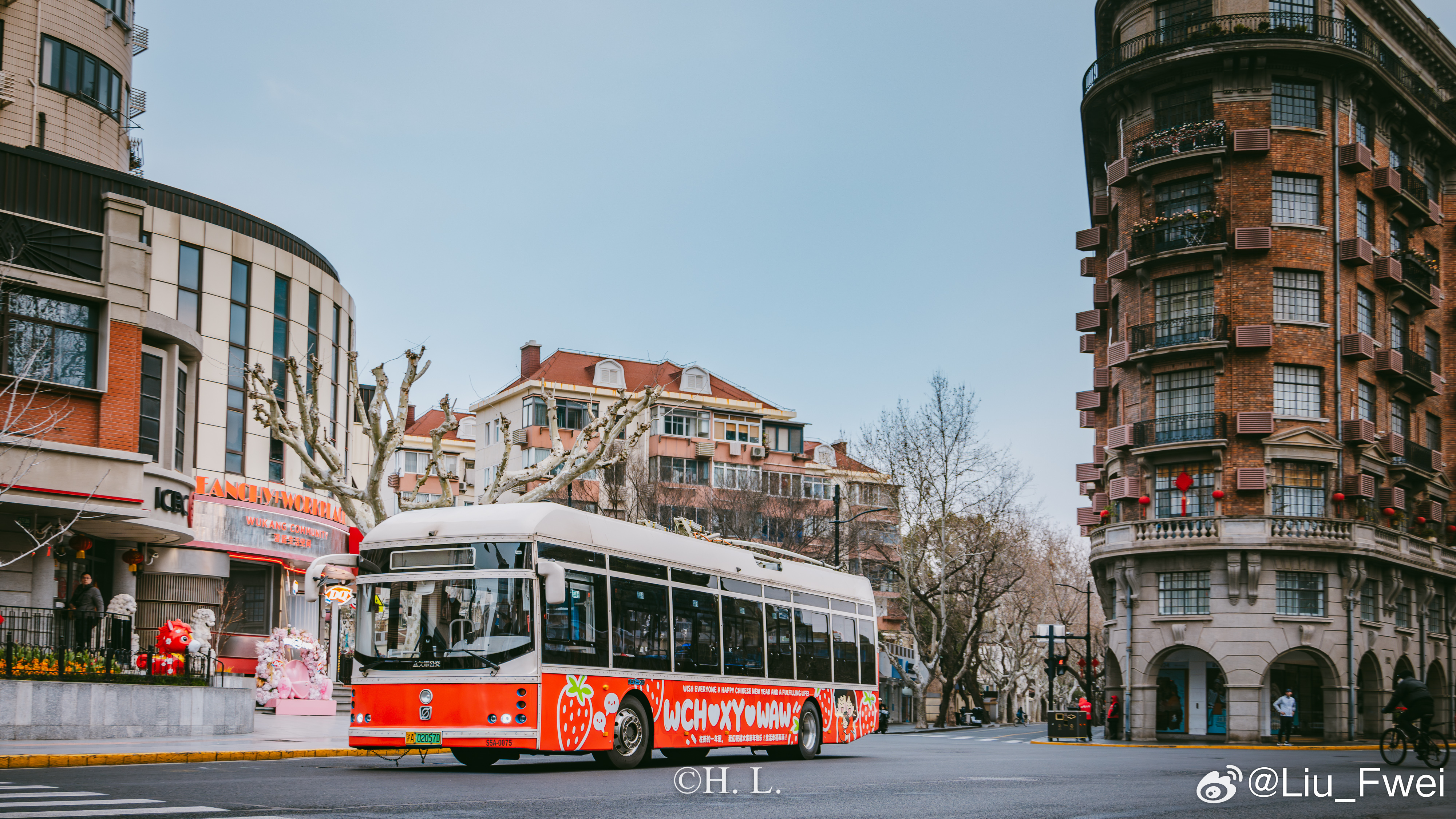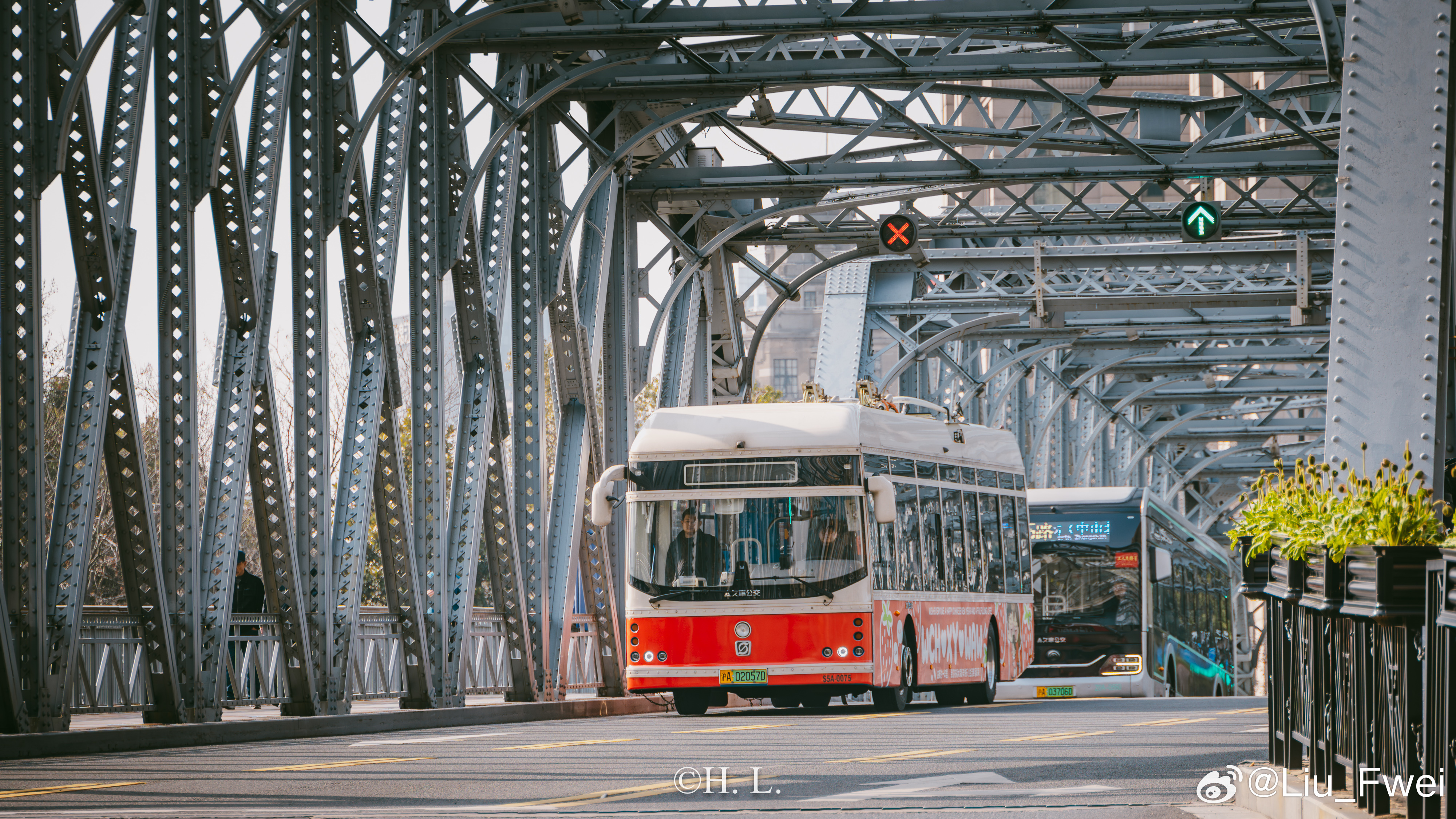 今天,投放的广告车作为特约车拍了一些广告片段。广告拍摄的主要地点为天平路淮海中路、中山公园、浙江北路天目东路和外白渡桥。有幸和广告公司一起参与了其中的部份活动,拍了点照片。图1: 交通大学。广告车在早晨六点准时出场前往天平路淮海中路,在车辆经过交通大学的时候,我按下了快门,以此纪念一下26路。图2: 天平路淮海中路。这是26路无轨电车的经典走向。图3: 武康大楼。也是26路的经典走向,投放人期望通过这样的方式来纪念逝去的26路无轨电车。电车沿着淮海路绕了两圈,可惜因为是随拍,我带的器材也比较随便,所以也没办法在一张照片中同时容纳电车和武康大楼。图4: 中山公园万航渡路站。也是今天重要的取景位置。投放人为了纪念他与13路无轨电车曾经深厚的感情而选择这个位置。可惜当电车抵达的时候,20路的2004号主题车恰好离开,失去了双车合影的机会。图5:天目中路随拍。接下来沿着13路的路线前往浙江北路。由于车辆电池电量急坠,不得不补充一点电量。图6: 浙江北路天目东路。又一个定点拍摄广告的地方。图7 图8 图9: 外白渡桥。最后一个拍摄位置,为动态拍摄。