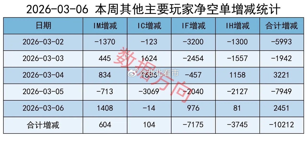 其他主要玩家,全周减空10212手;