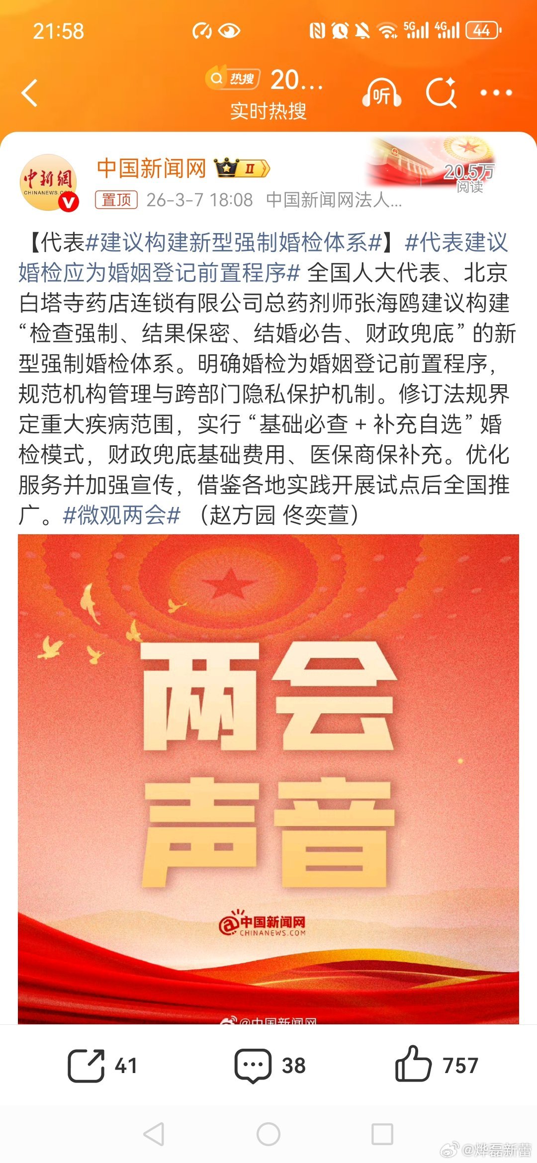建议农村高龄老人养老金涨至每月500建议构建新型强制婚检体系】代表建议婚检应为婚姻登记前置程序 婚检还是自愿为好,鼓励为主,不适宜强制婚检,因为涉及个人隐私,就是夫妻之间也有隐私。爱本来就应该不分健康和疾病贫穷和富裕。 生育不是婚姻的唯一目的,那么婚检就不必然是婚姻的前提条件。如果真的极其看重婚姻当中的生育目的,两个人商量着去检查,也远比政府强制要好得多。既然相爱是自由的,那么婚检也应该是自由的。