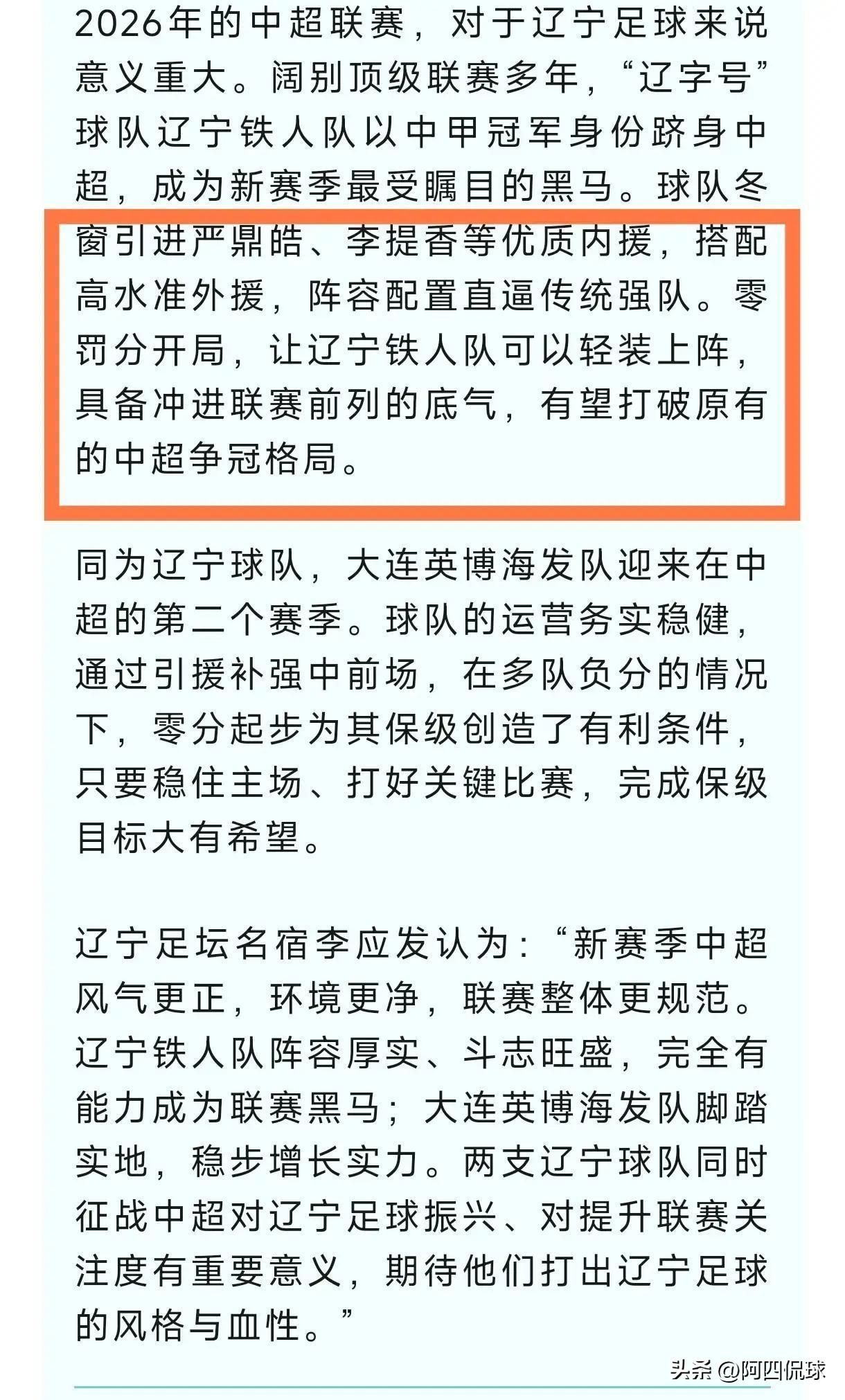 第一场比赛输给山东泰山三个球,辽宁铁人估计也没有想到中超联赛并不好踢。现在看来,《辽宁日报》给辽宁铁人新赛季定调“打破中超争冠格局,冲击中超联赛冠军”就是个大笑话。 有一说一,辽宁铁人引进了严鼎皓、李提香等球员,加上身价最高的外援维蒂尼奥,看起来辽宁铁人鸟枪换炮,但是引进的新球员太多,球队需要时间磨合。而山东泰山老谋深算,故意让出控球权,利用反击打进三个球,给辽宁铁人上了一课。 那么问题来了,您辽宁铁人的实力,会不会成为中超联赛冠军的搅局者?中超