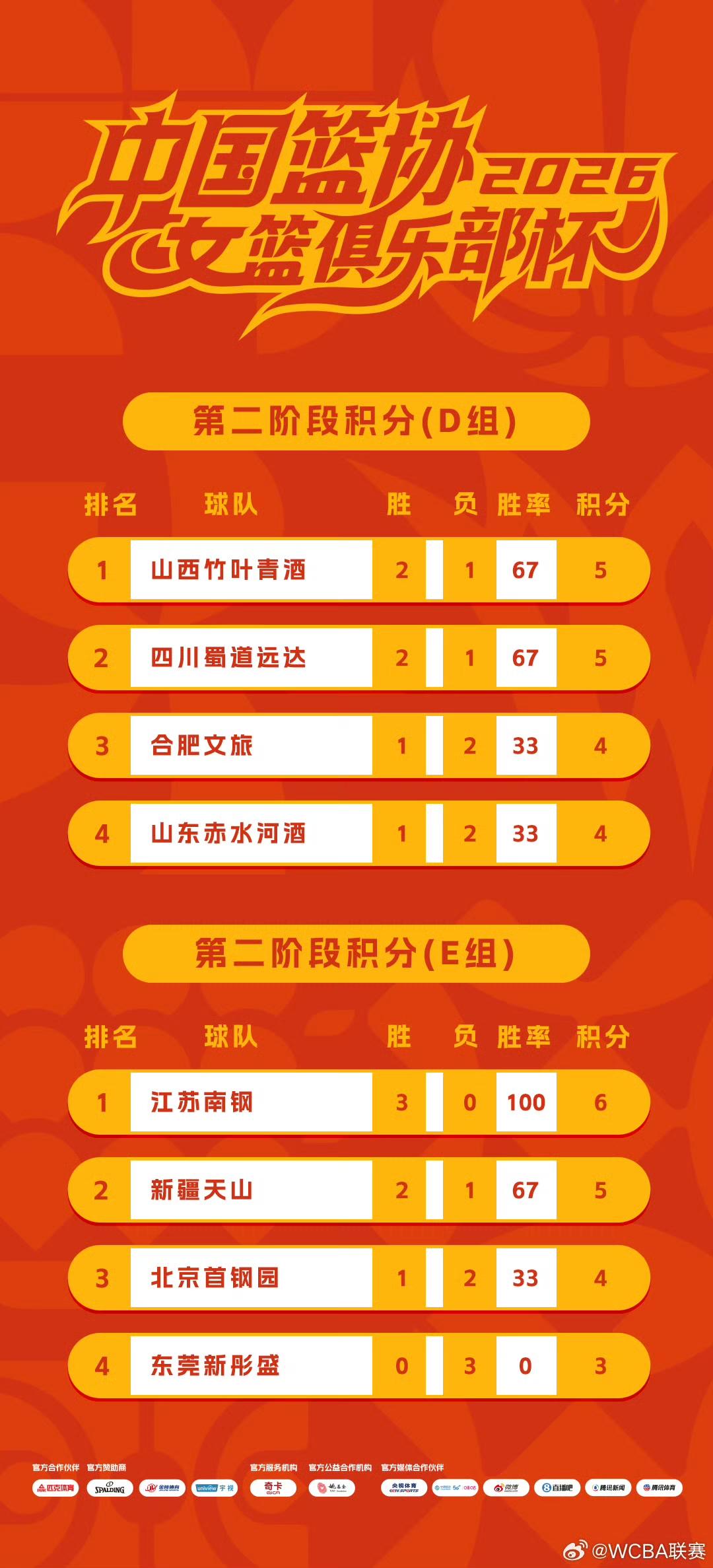 WCBA俱乐部杯四强大战如下 时间就是今天下午和晚上,各有一场 D组第一名是山西女篮,根据赛制是与E组第二名新疆女篮进行对决,时间就是今天下午的17:00(这一场球,我认为山西女篮赢球的可能性要大一些,但也没有很大优势,唯一优势是有三外援,而新疆女篮没有外援,但武桐桐、王雪朦两位大将,得分能力很强,不会逊于外援,所以过程应该是会很焦灼) 晚上19:30,则是由E组第一的江苏女篮与D组第二名四川女篮进行对阵,这两支队伍,我看好四川女篮获胜,因为四川女篮本赛季已经跌跌撞撞的走了过来,今晚大概率会击败江苏女篮,挺进首届俱乐部杯决赛!