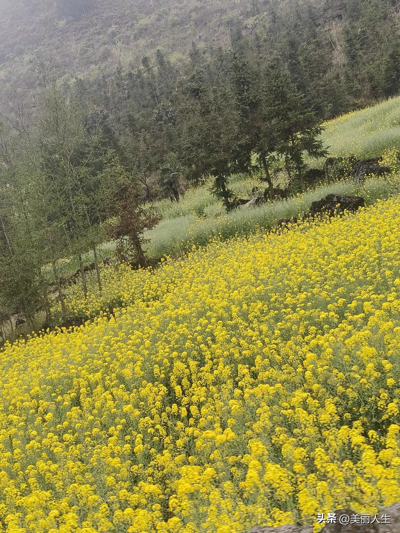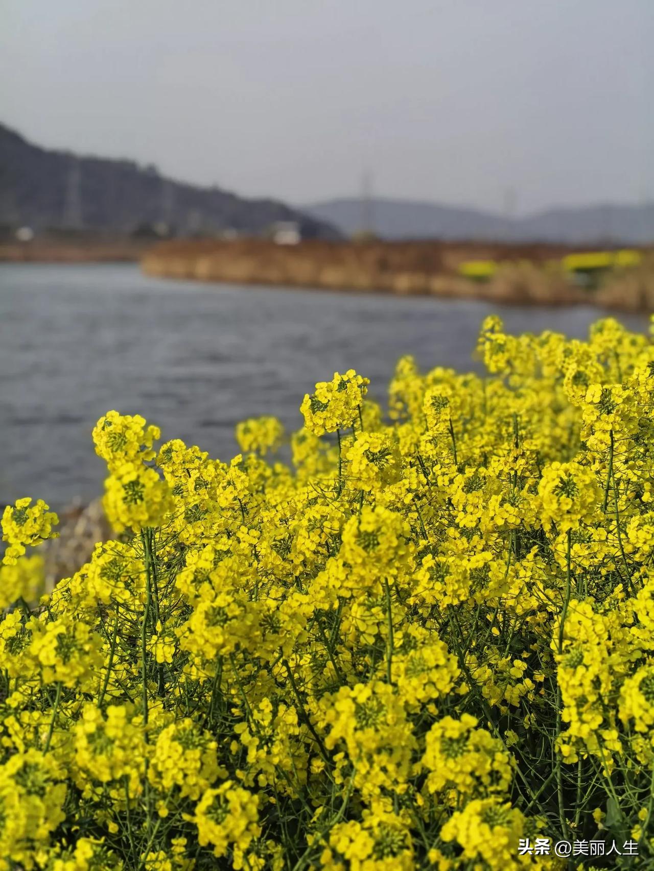 油菜花漫坡金黄。风过无痕,水色清浅,远山淡墨。