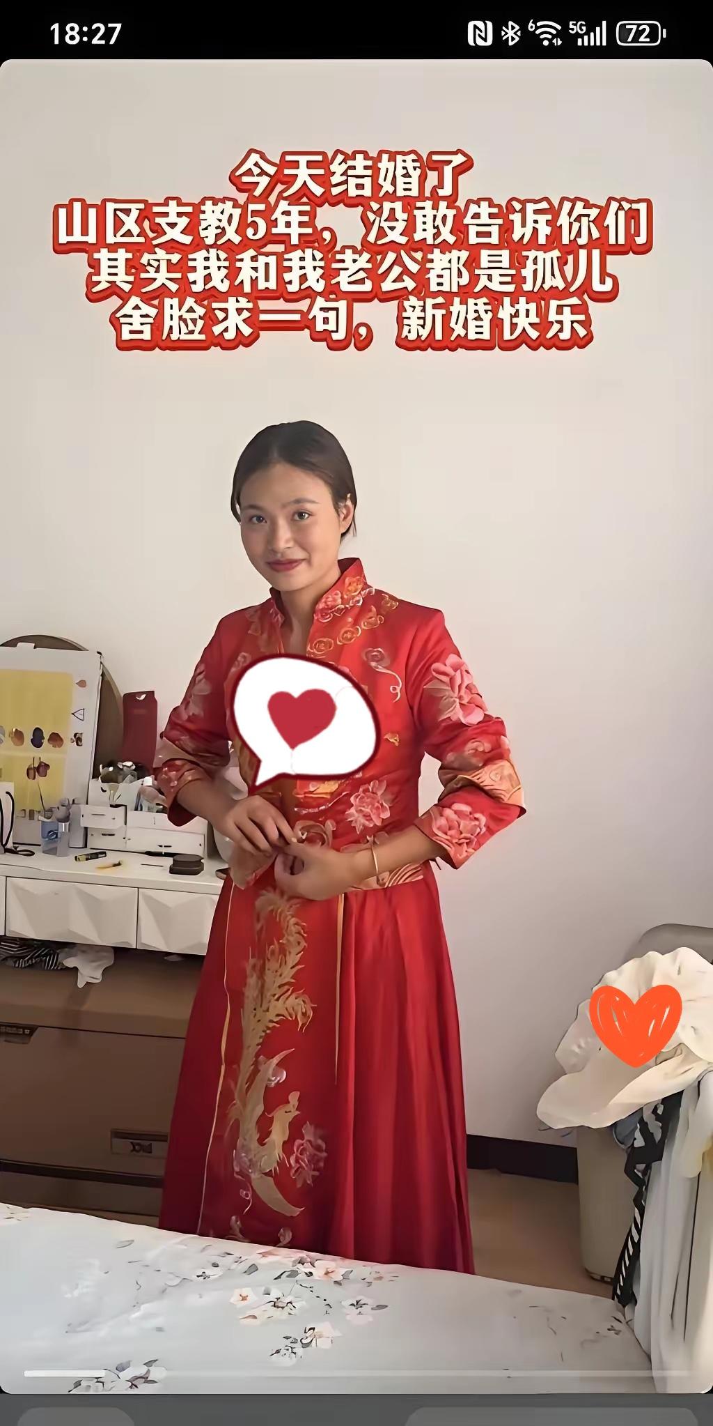 这新娘简直“杀”疯了!不是嫁入豪门那种“杀”,而是用纯粹的爱把世俗标准“杀”得片甲不留!没有豪华婚宴,没有环球旅行,婚房就一间小屋、一张床、一个梳妆台,窗户上贴个喜字,却比任何豪宅都温馨。 新娘新郎都是孤儿,在山村支教,婚宴请村里老人主持,没彩礼没嫁妆,连五金改口费都省了——可他们眼里有光,笑容里全是幸福。他说“有她在的地方就是家”,她笑得毫无伪装,只有对未来的期待。 这哪是结婚?这是对物质至上的狠狠反击!他们用行动证明:幸福从不是靠钱堆出来的,而是两颗心的相互取暖。这样的爱情,比任何偶像剧都动人! 你觉得这样的婚礼够浪漫吗?评论区聊聊,你心中最完美的婚礼是什么样的?