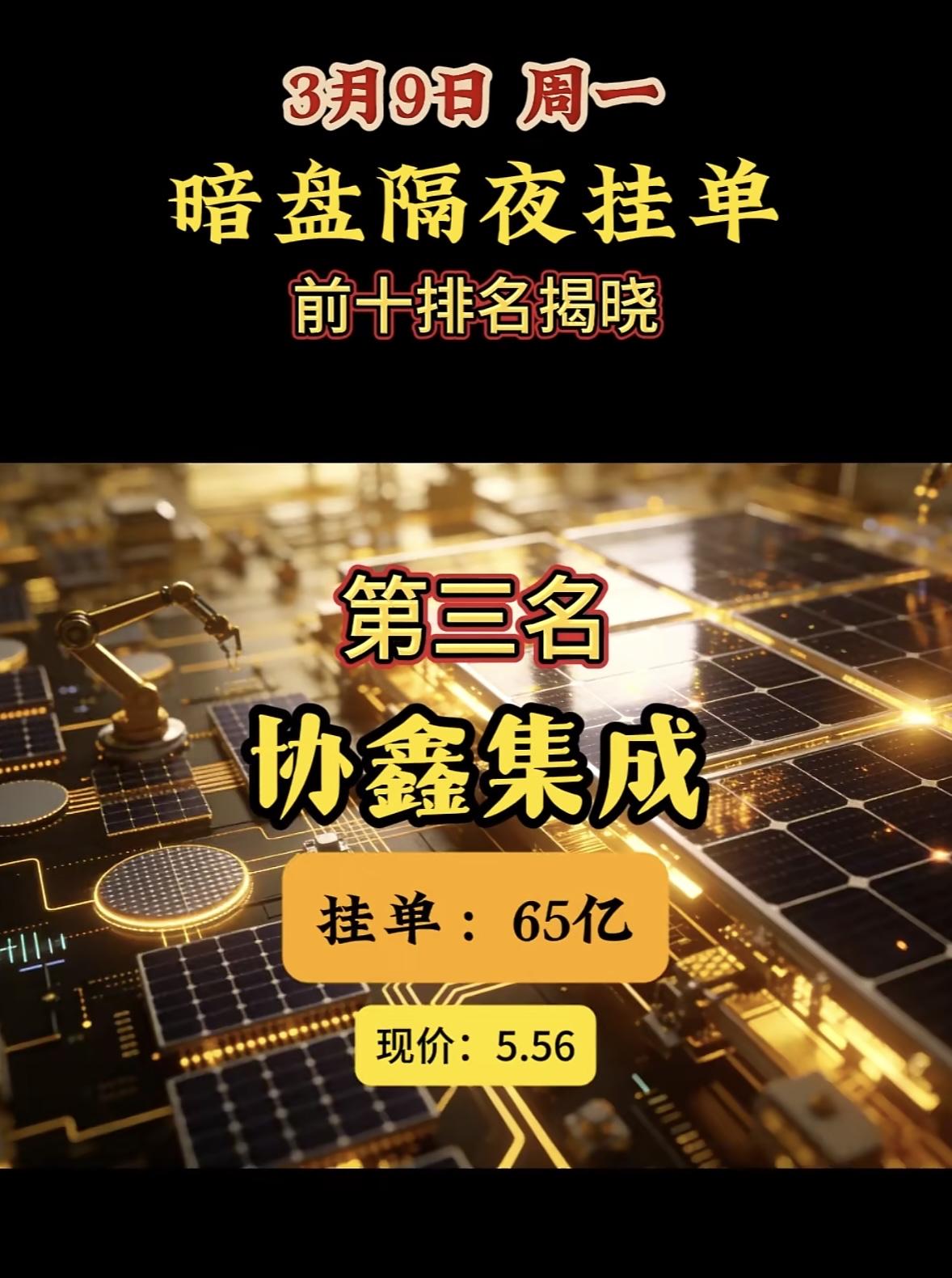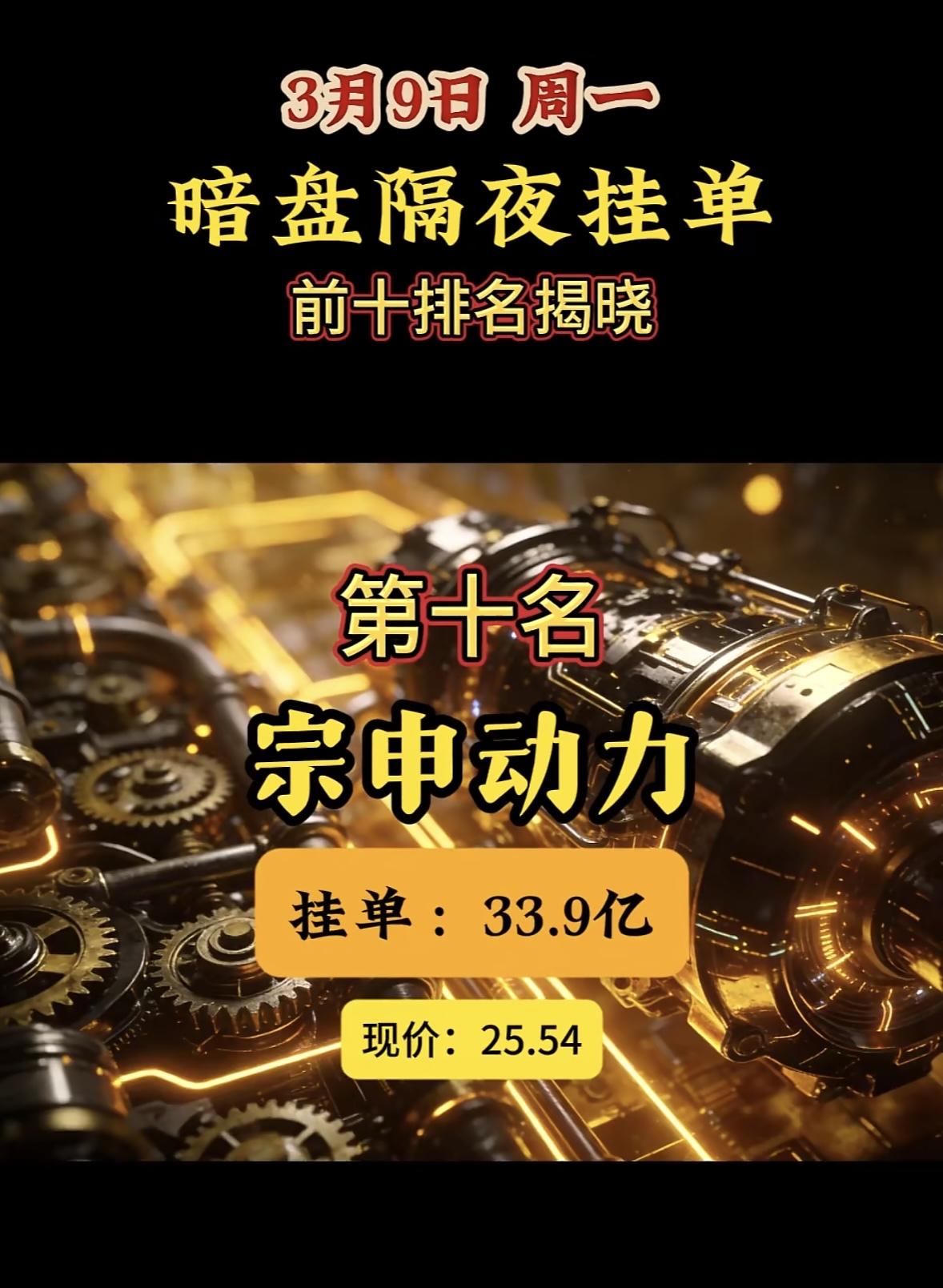 3月9日暗盘隔夜挂单前10名个股榜,宗申动力第10名,现价25.54元 3月9