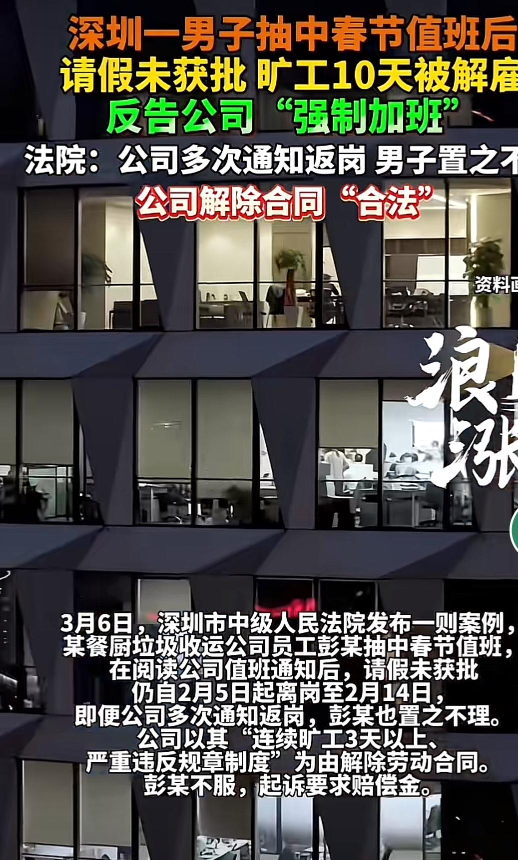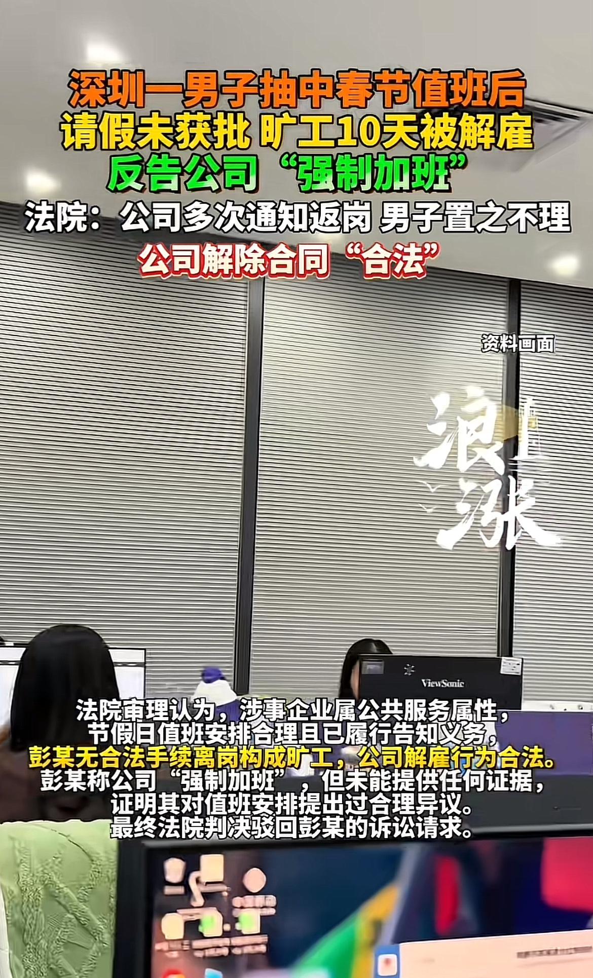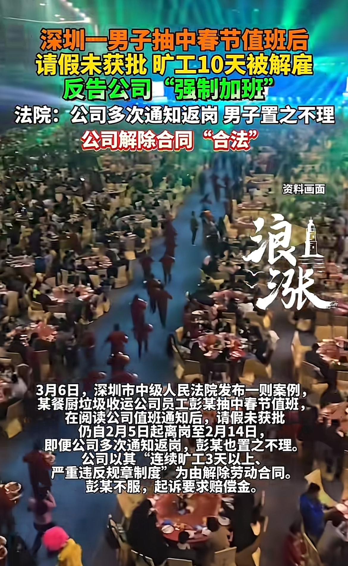 深圳这事儿真挺逗。一男子抽中春节值班,请假没获批就直接旷工,结果被公司解雇,还反告公司“强制加班”。这公司是餐厨垃圾收运的,属于公共服务行业,节假日值班安排合理,也提前告知员工了。可这彭某倒好,从2月5日到2月14日离岗,公司多次通知返岗都不理。最后法院也判得明白,彭某无合法手续离岗就是旷工,公司解雇合法。他说“强制加班”又拿不出证据,也没对值班安排提合理异议,这诉求自然被驳回。只能说,工作还是得守规矩啊。