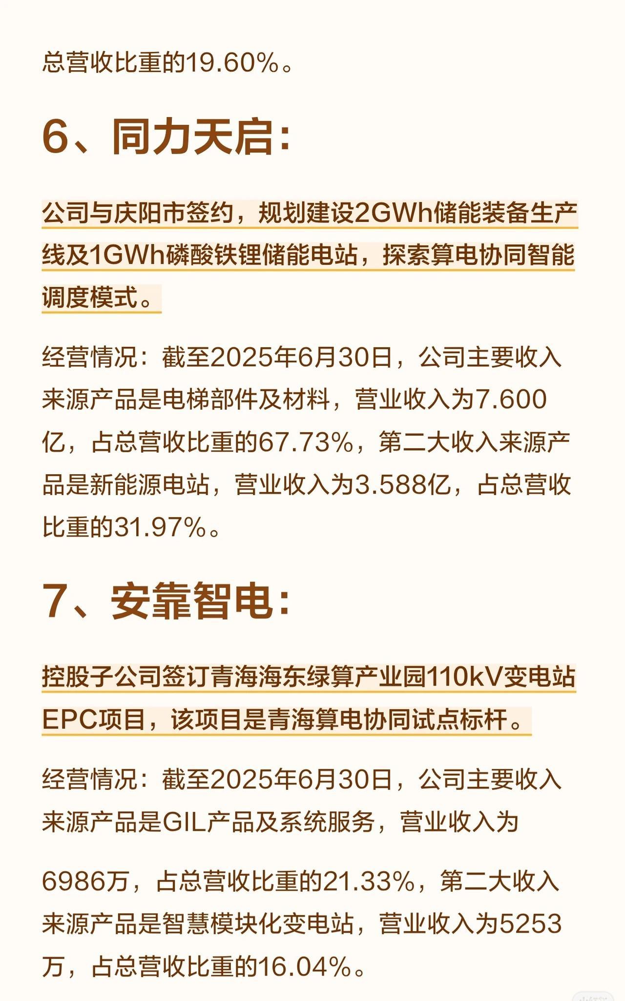 7.安靠智电:子公司签订青海绿算产业园变电站EPC项目,是当地试点标杆。