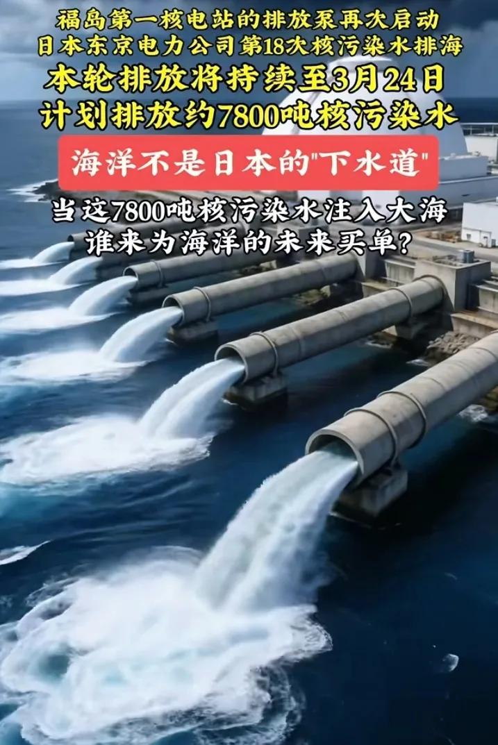 日本这算盘打得是真精,专挑大伙视线被转移的时候下手。 现在全世界都在盯着中东那块地界,谁还有闲心管日本那档子事? 结果就在昨天上午10点,那边悄没声地开启了第18轮核污水排海。这一开闸就要流到3月24号,整整7800吨脏水又要往太平洋里灌。 我就觉得挺悲哀的,以前第一次排的时候全网都在骂,现在到了第18次,热搜上居然连个水花都没有。 咱们这忘性是不是也太大了?算下来从2023年到现在,累计都造了13.3万吨了。 这就是典型的“温水煮青蛙”,排着排着大家都麻木了,仿佛这事儿不存在一样。 以后去菜市场买鱼买虾,心里是真得犯嘀咕,这一代人造的孽,还不是全人类跟着买单。