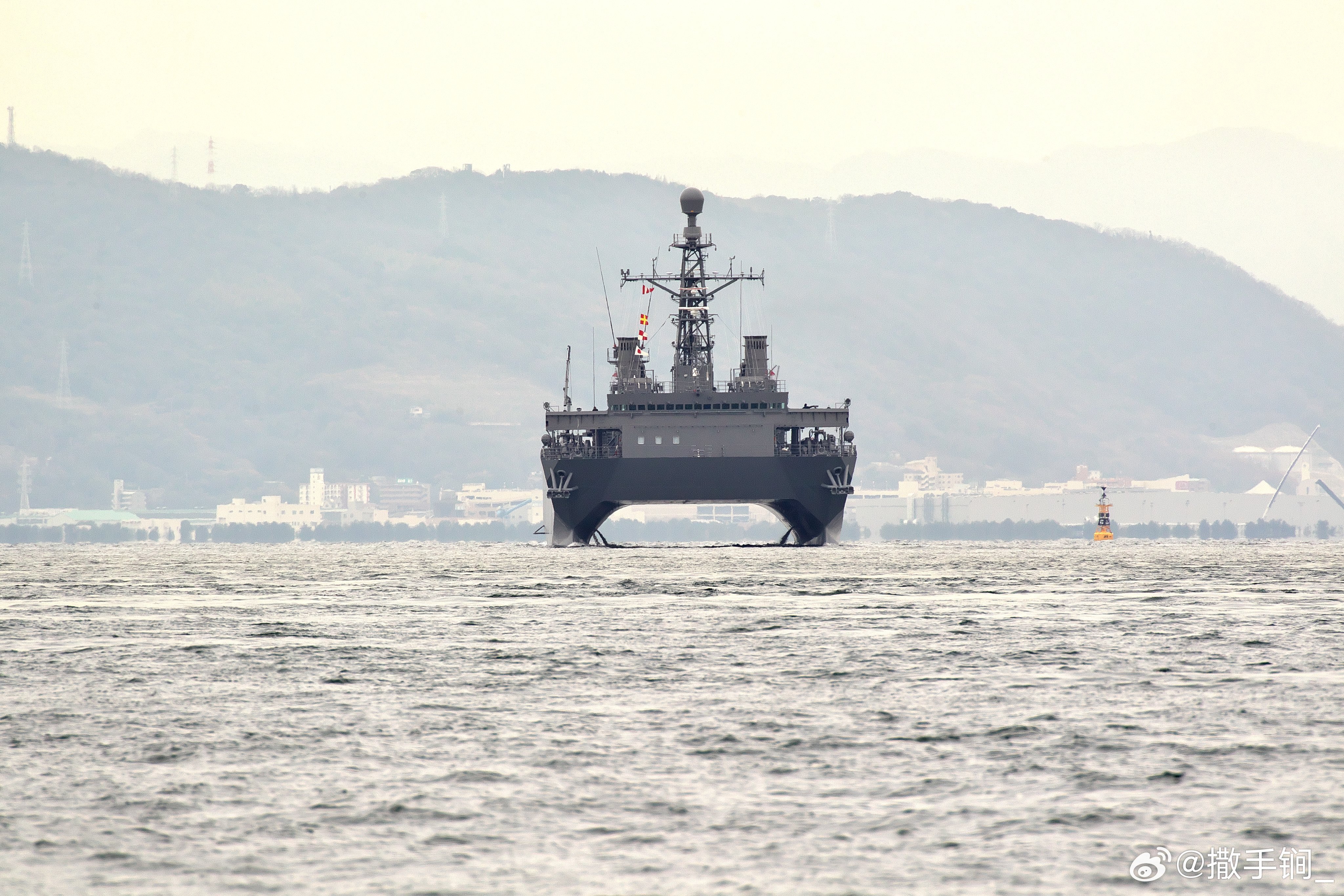 日本海自5204“备后”号声学测量舰前天在三菱玉野船厂交付服役,并于今天抵达吴基地。这是海自第四艘响级测量舰,用于收集潜艇及其他船只的声学数据和独特特征。此级为小水线面双体船,由两个鱼雷形的船体组成,通过细长支架与上部结构相连。由于大部分船体隐于水面以下,波浪冲击显著减少,使船只即使在波涛汹涌的海况中也能保持稳定并进行灵敏的声学测量。响级最高航速为11节,每艘船配备40名船员,还设有直升机作业的飞行甲板。此级所载系统设备的核心是拖曳阵列传感器系统(SURTASS),这是一套从船尾部署的长拖曳声纳阵列。该系统由一组低频水听器组成,能够探测远距离的水下声音。通过拖曳船身后方的阵列,可以收集潜艇及其他船舶的声学数据,识别其独特的声学“指纹”。海自动态
