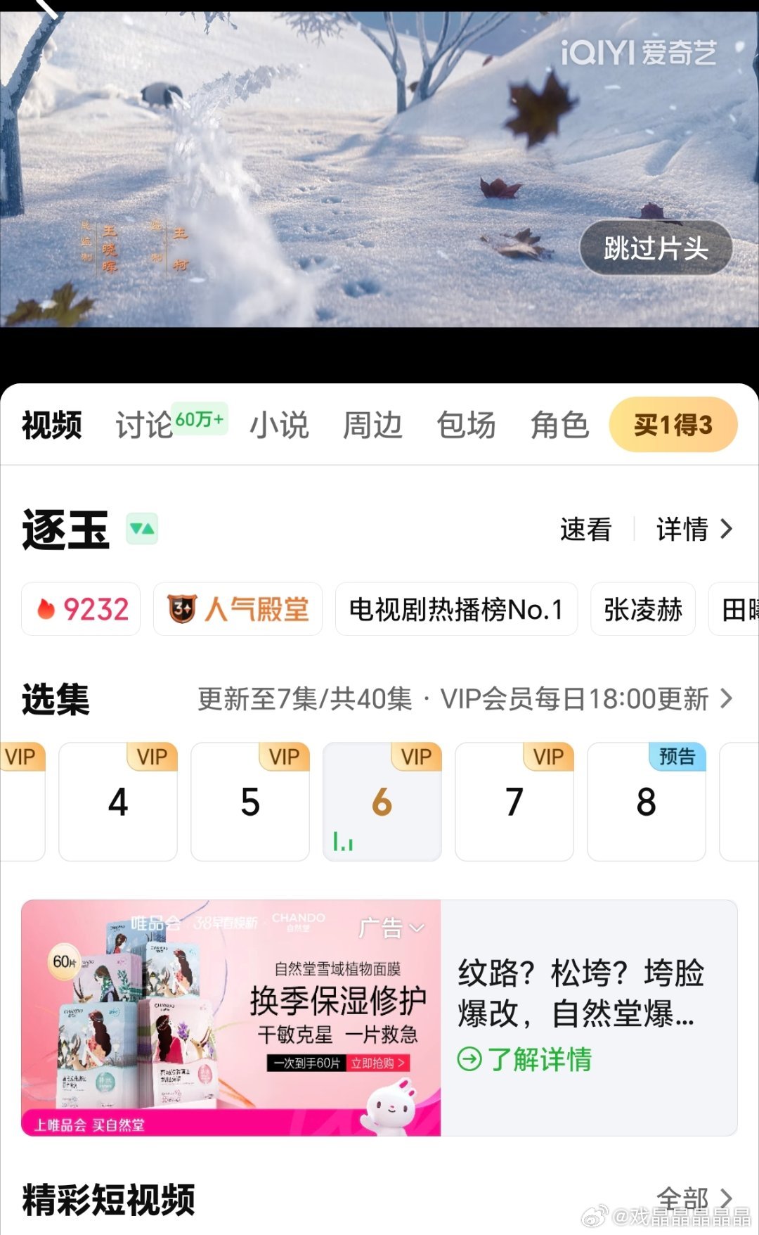 逐玉你们敢相信吗?逐玉现在的爱奇艺热度9232,鹅热度26071,这是准备双平台破万了