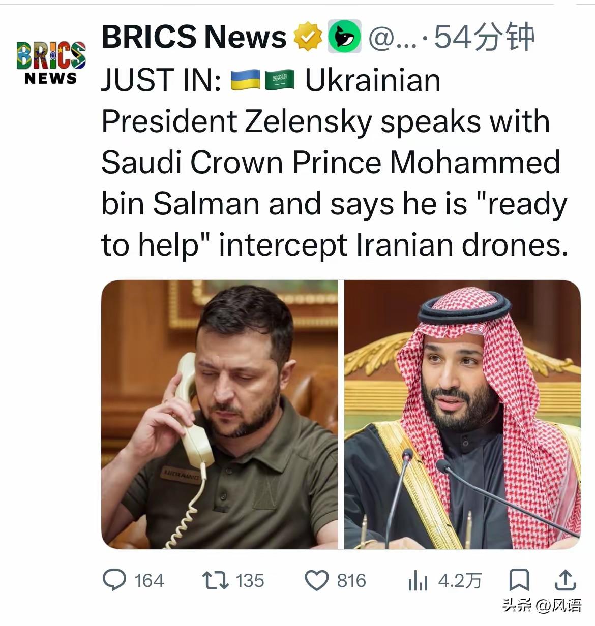 泽连斯基主动介入中东冲突 ———————————————— 3.7日,泽连斯基与沙特王储萨拉蔓就无人机援助最后拍板,这是在美国向乌克兰提出要求之后,但在此之前,泽连斯基已分别同阿联酉、卡塔尔、阿曼、巴林等多国就无人机援助事宜通电话。 泽连斯基认为,乌克兰拥有应对伊朗无人机的丰富经验与切实可行的手段,包括无人机反无人机及电子干扰等低成本手段,成功率达80%-90%,成本仅需爱国者0.02%。 泽连斯基的援助是有条件的,一是要求沙特阿拉伯及海外国家组成一个团体游说俄罗斯停战15天至30天,二是通过乌克兰的援助手段节省下来的爱国者导弹要转售给乌克兰。 说到底,泽连斯基抢在美国之前游说中东国家,倒逼美国表态,为的还是与以色列、美中东基地抢资源。 在沙特的最后拍板之下,当下,首批专家已启程阿联酋、卡塔尔、巴林。