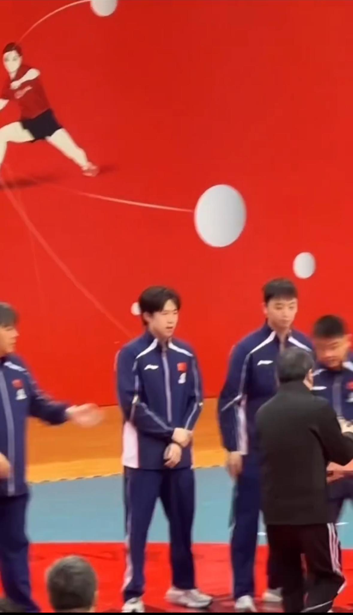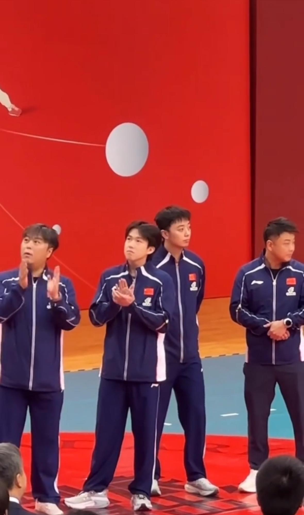 王楚钦真的是好有教养,一直拍手,还点头。这孩子教育的很好,国家队的翘楚! 个子很