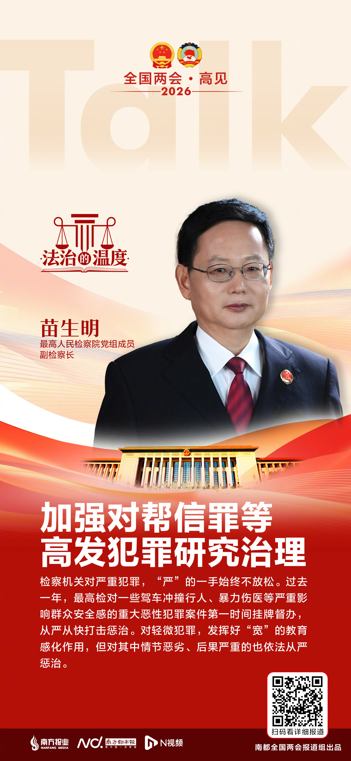 #苗生明谈帮信罪等高发犯罪治理#【专访最高检副检察长苗生明:加强对帮信罪等高发犯罪研究治理】#2026都看两会#2025年全国受理审查起诉刑事案件同比下降13%,群众安全感连续6年保持在98%以上,社会治安形势持续向好。其中,影响人民群众安全感的多发犯罪数量下降明显,危险驾驶罪同比下降21%,13个省份危险驾驶罪已不再是受理人数最多的罪名。