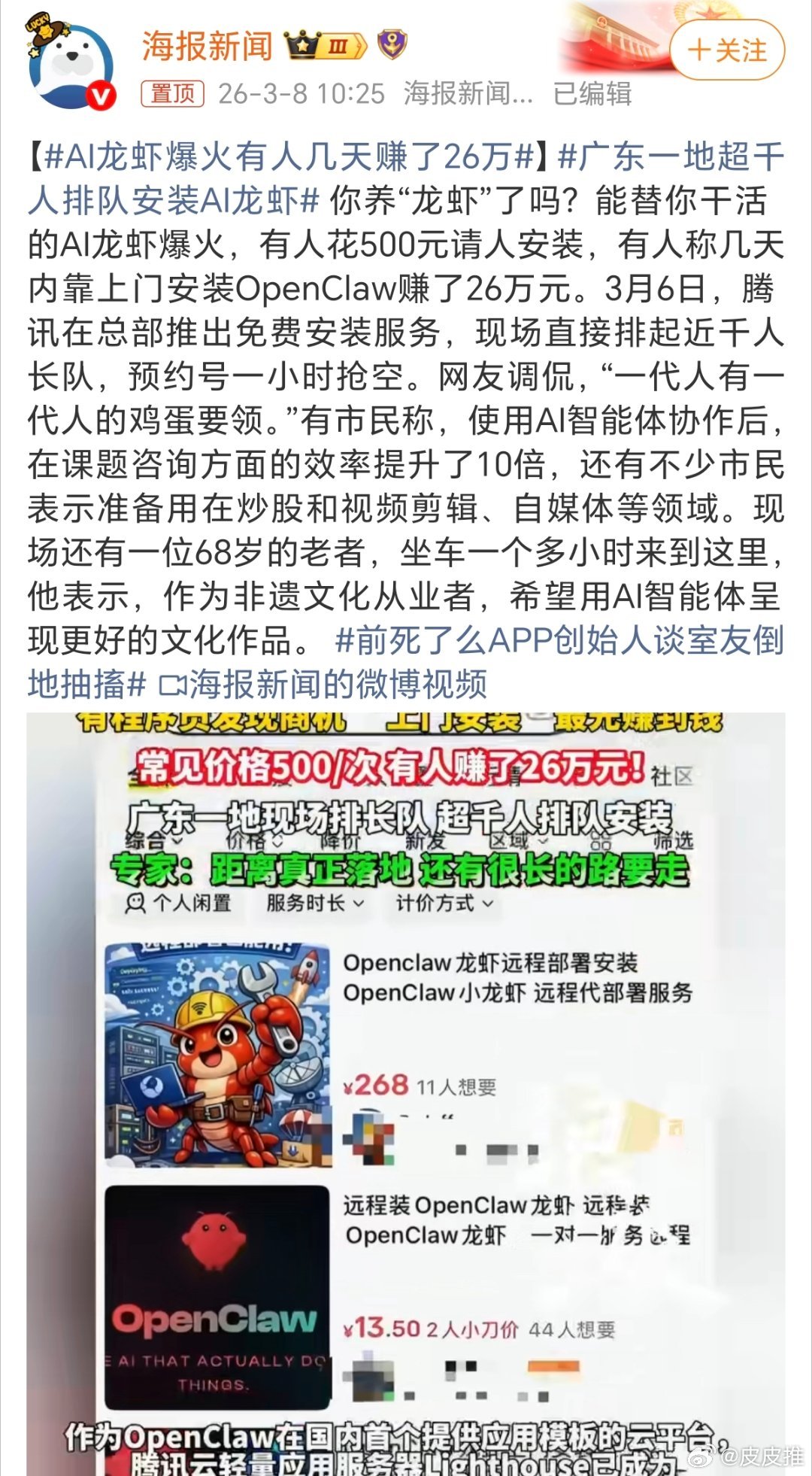 AI龙虾爆火有人几天赚了26万站在AI风口上,猪都会飞,但是能飞得多久就不得而知