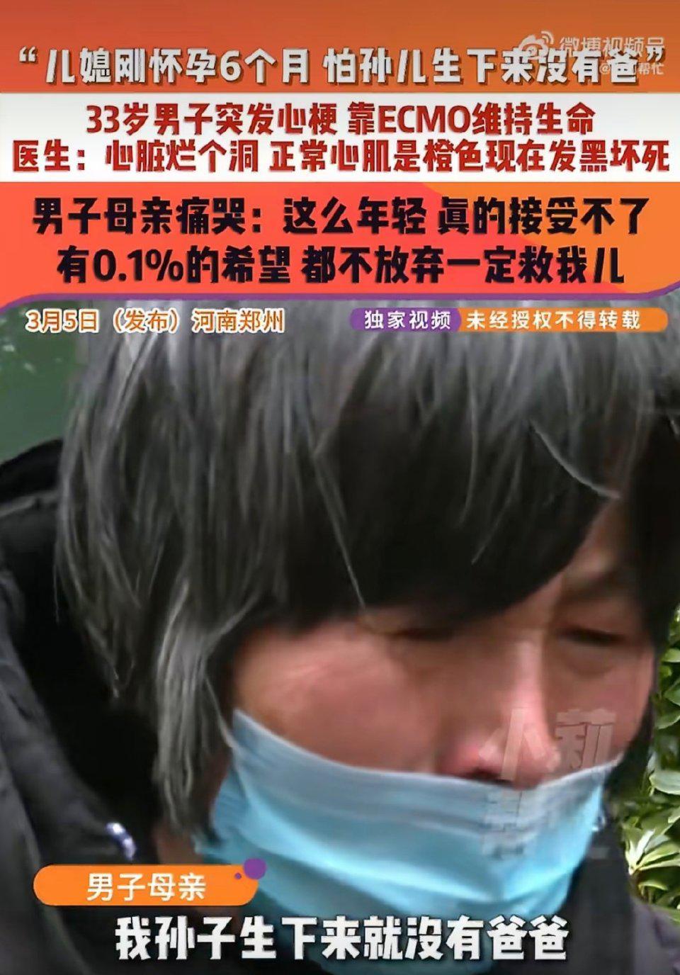 河南郑州一位33岁的准爸爸,突然被急性心梗击倒,还出现了心脏室间隔穿孔,大家通俗说就是心脏烂了个洞,心肌大面积坏死发黑,只能靠ECMO人工心肺机勉强维持生命。他的妻子已经怀孕6个月,马上就要迎来新生命,可家里的顶梁柱却倒在了ICU里。婆婆对着镜头含泪说,哪怕只有0.1%的希望,全家都绝不放弃,就怕孩子一出生就没有爸爸。这句话戳中了无数网友的心,大家一边为这个家庭揪心,一边也被狠狠敲了一记警钟:心梗真的不再是老年人的病,年轻人的健康正在被悄悄透支。 很多人看到这事儿第一反应都是不敢信,才33岁,不抽烟,偶尔喝点酒、熬熬夜,怎么就把心脏熬到穿孔坏死。医生说,他的血管被血栓彻底堵死,心肌失去供血慢慢坏死,薄得像泡烂的墙皮,一冲就破,这不是一天两天造成的,而是长期不规律生活攒下的病根。现在越来越多年轻人觉得自己年轻扛得住,加班熬夜是常态,外卖奶茶不离手,久坐不动不锻炼,压力大了也硬扛,总以为不舒服忍忍就过去。可血管不会说谎,熬夜让血压升高、心脏超负荷,高油高糖饮食让血管长斑块,压力大让血管容易痉挛,这些不起眼的小事,一点点把心脏逼到绝境。 这件事最让人难受的,不只是病情有多凶险,而是一个家庭的希望突然悬在了半空。马上要当爸爸的人,还没来得及抱一抱自己的孩子,就躺在病床上和死神抢时间;怀孕的妻子一边期待宝宝到来,一边日夜担心丈夫;年迈的父母放下所有尊严,只求能留住儿子。我们总说来日方长,可健康从来不会等我们准备好,意外也不会因为你上有老下有小就绕道走。多少年轻人为了生活拼命打拼,把身体当本钱肆意挥霍,直到病倒才明白,没有健康,一切打拼都没了意义,再美好的未来都成了空谈。 这不是个例,现在心梗年轻化越来越明显,三四十岁突发心梗的例子越来越多。年轻人的血管斑块更不稳定,一旦发作来得更急、更凶,抢救难度也更大。我们总觉得疾病离自己很远,可看看身边,熬夜后心慌、久坐后胸闷、压力大到失眠,这些都是身体在发出警报。别再用年轻当借口,别再把透支当努力,好好睡觉、按时吃饭、少熬夜多运动,不舒服及时去检查,这些看似简单的小事,才是对自己和家人最负责的做法。 生命从来没有重来的机会,一个家庭的幸福,就系在每个人的健康上。希望这位准爸爸能挺过难关,也希望每一个正在打拼的年轻人,都能把健康放在心上,别让爱你的人担惊受怕,别让本该圆满的人生留下遗憾。大家平时有哪些忽视健康的习惯,看完这件事有没有想立刻改掉的,都可以在评论区聊聊。 来源:小莉帮忙
