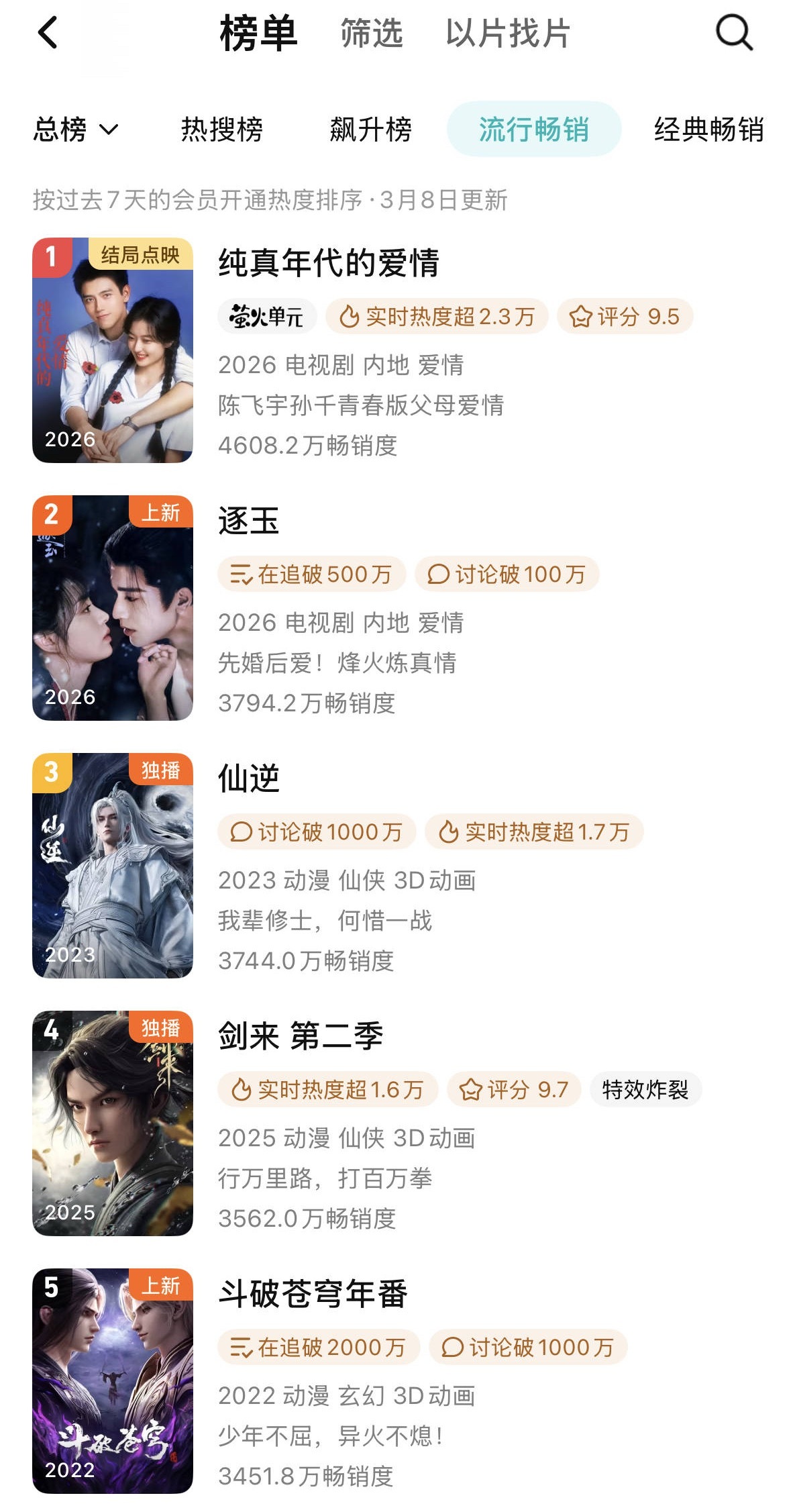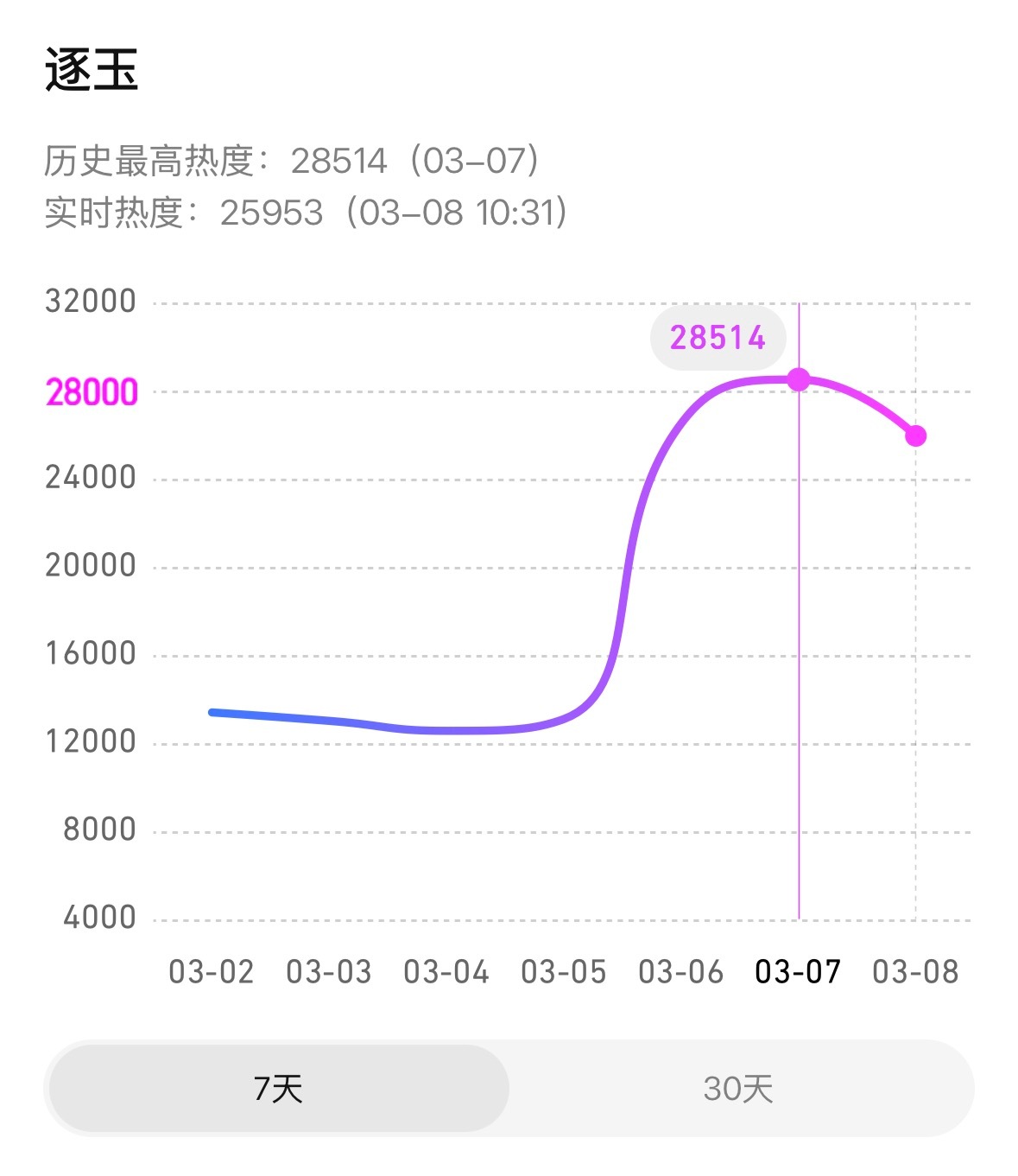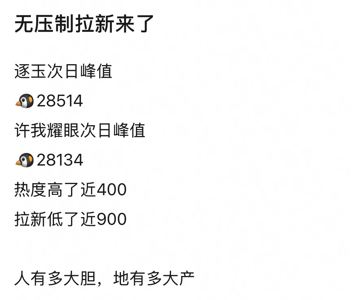 逐玉这平台下载、百指和拉新太有意思了平台下载量近期最差,6号所有的老剧新剧百指全归零,7号再都叠加起来,都跟着逐玉大涨。在鹅的拉新也对不上,28500➕的峰值,无压制才49561……粉丝不用拿联播分流说影响拉新,一路狂飙的热度再那,就是对不上,而且逐玉双平台待遇都拉满了和独播也没差,再扯其他爹不疼娘不爱的联播剧出来真的别太欺负人了,预制成这样就为了强捧出不了头的待爆,真的有意思么??