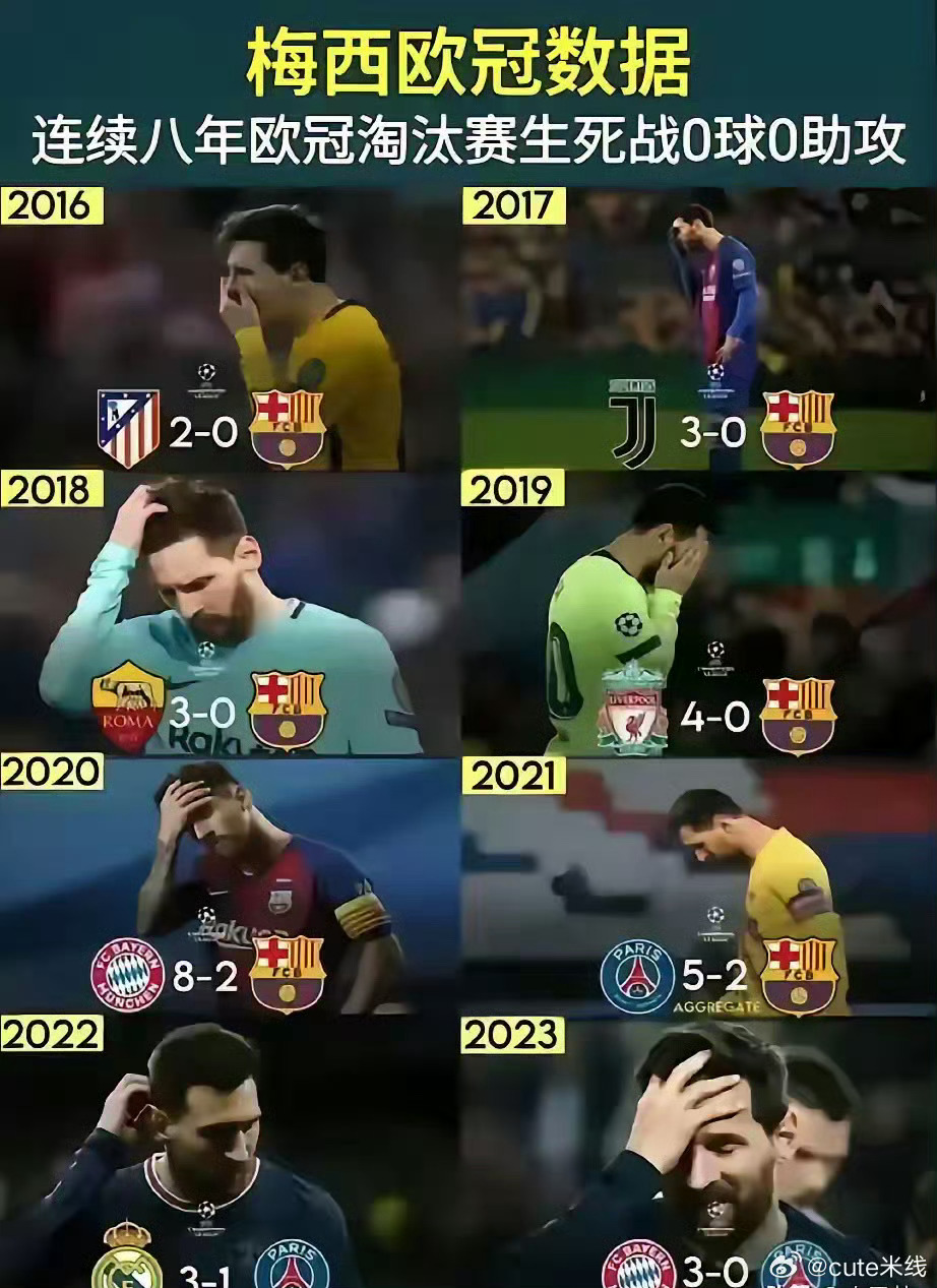 8003:梅西8次欧冠淘汰赛生死战0球0助!