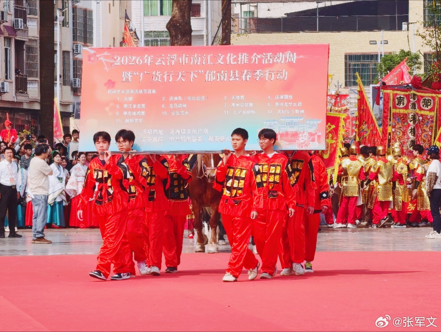 民俗巡游燃动郁南!!!2026年云浮市南江文化推介活动周暨“广货行天下”郁南县春季行动盛大启幕,民俗巡游成为全场亮点。锣鼓喧天、队伍浩荡,禾楼舞、连滩飘色、张公出巡、南江茅龙舞等非遗项目轮番亮相,跨省特色民俗节目同台献艺,醒狮齐舞、气势如虹,沿街人潮涌动、热闹非凡,尽显南江文化独特魅力与地方发展活力,为市民与游客献上一场精彩纷呈的文化盛宴!广货行天下之云浮有优品V探云浮优品V探南江文化粤分享粤精彩 云浮·郁南
