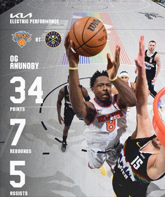 尼克斯狂胜掘金39分!穆雷伤退 一场原本被看作强强对话的比赛,打到后面却变成了单方面的压制。纽约尼克斯客场挑战丹佛掘金,这不是普通一战。 尼克斯刚刚输给雷霆,三连胜被终结,球队需要回应;掘金坐镇主场,西部第五的位置并不稳固。悬念从开场就存在,只是谁也没想到走势会如此极端。 比赛的转折点来得很突然。贾马尔·穆雷在首节还在掌控节奏,10投5中拿下12分3助攻,可一次扭伤脚踝让他提前退场。掘金的进攻体系随之松动。 第二节开始,比分慢慢拉开,单节23比38的差距摆在眼前。到了第三节,尼克斯再轰出40分,掘金只得到28分,比赛气势已经完全倒向客队。 真正让人印象深刻的,是OG·阿奴诺比的表现。31分钟里17投11中,三分10中5,罚球6中6,交出34分7篮板5助攻4抢断,这是个人赛季新高。 阿奴诺比的得分并不花哨,更多来自转换与空位把握。我认为这场比赛体现了阿奴诺比在尼克斯体系中的价值,他既能拉开空间,也能在防守端施压。 卡尔·安东尼·唐斯打了27分钟,17分13篮板的数据稳定输出,正负值+19。约什·哈特18分,米切尔·罗宾逊替补贡献13分。杰伦·布伦森手感不佳,13投3中只得9分,却送出15次助攻。上一场对雷霆也是15次助攻,布伦森的节奏掌控仍然在线。 掘金并非没有抵抗。尼古拉·约基奇30分钟21投14中,得到38分8篮板5助攻,罚球10中9。可正负值-18说明问题所在。掘金缺少穆雷的外线牵制后,约基奇的进攻更多变成单打支撑。阿隆·戈登复出却7投1中,仅得3分,状态明显不足。 比分定格在142比103,尼克斯净胜39分,战绩来到41胜23负,东部第三的位置稳住。掘金39胜25负,仍排西部第五。本赛季双方首次交手尼克斯曾双加时取胜,如今完成双杀。 我认为这场比赛的差距并不只是穆雷伤退这么简单。尼克斯的轮换深度、外线命中率以及防守强度都在掘金之上。掘金在节奏被打乱后,没有找到第二套方案。强队之间的对话往往看细节,穆雷的受伤放大了掘金的短板。 一场39分的失利值得掘金警醒,也让尼克斯在东部竞争中继续保持压迫感。强队的价值在于调整能力,这场比赛给出的答案很直接。谁准备得更充分,谁执行得更坚决,胜负自然清晰。