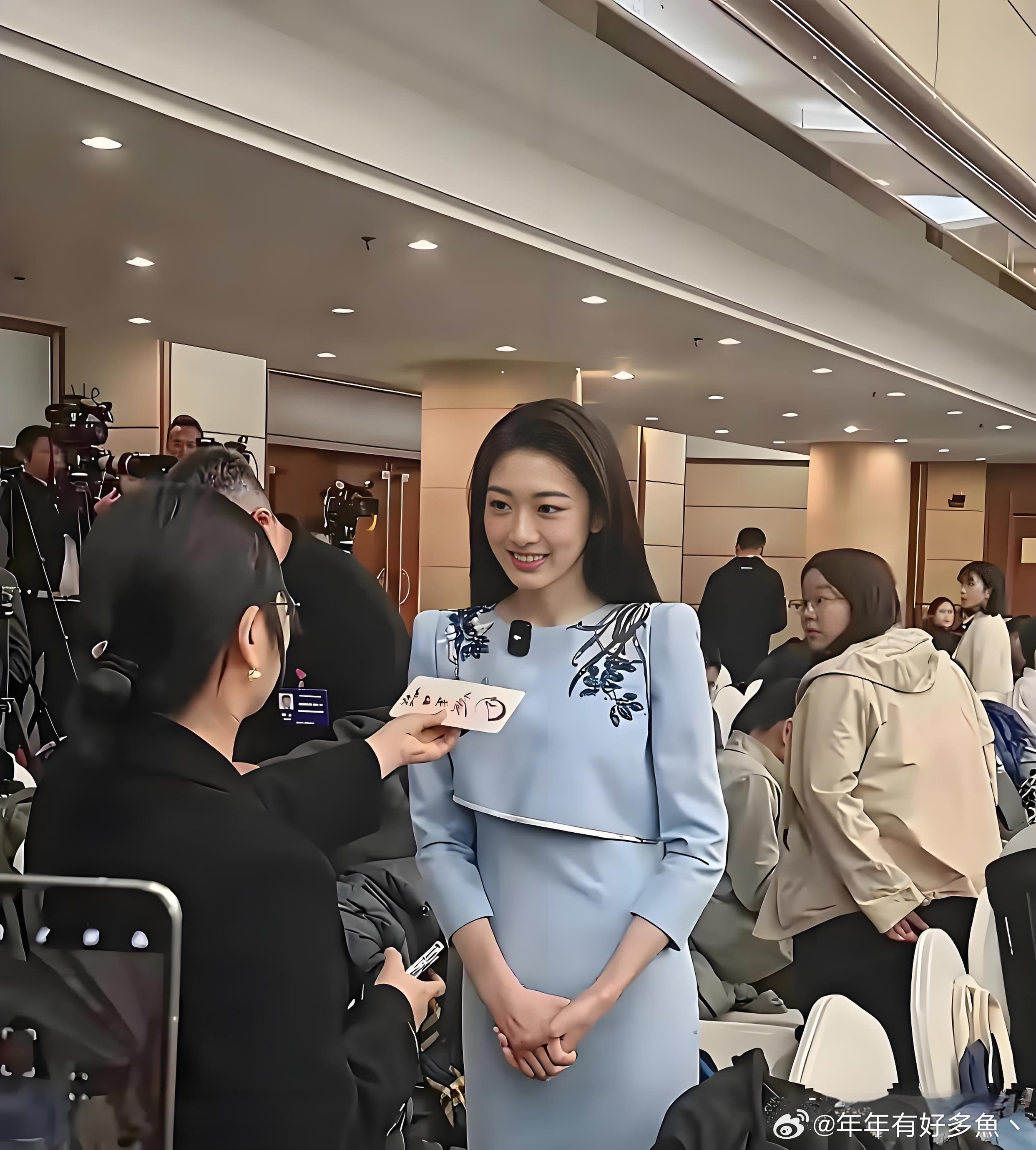 图中是央视记者冯禧。她因在央视镜头下展现出的优雅气质和出众颜值而受到关注。正如原帖所言,央视镜头常被视为检验颜值的“照妖镜”,而冯禧在其中展现了不输明星的风采。