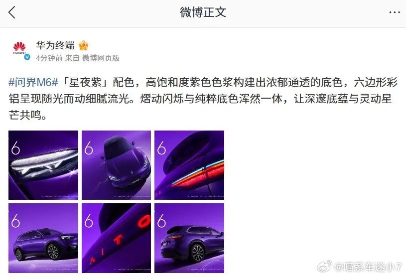 华为鸿蒙智行这次给问界M6出的星夜紫,颜值是真在线啊,我是真喜欢。