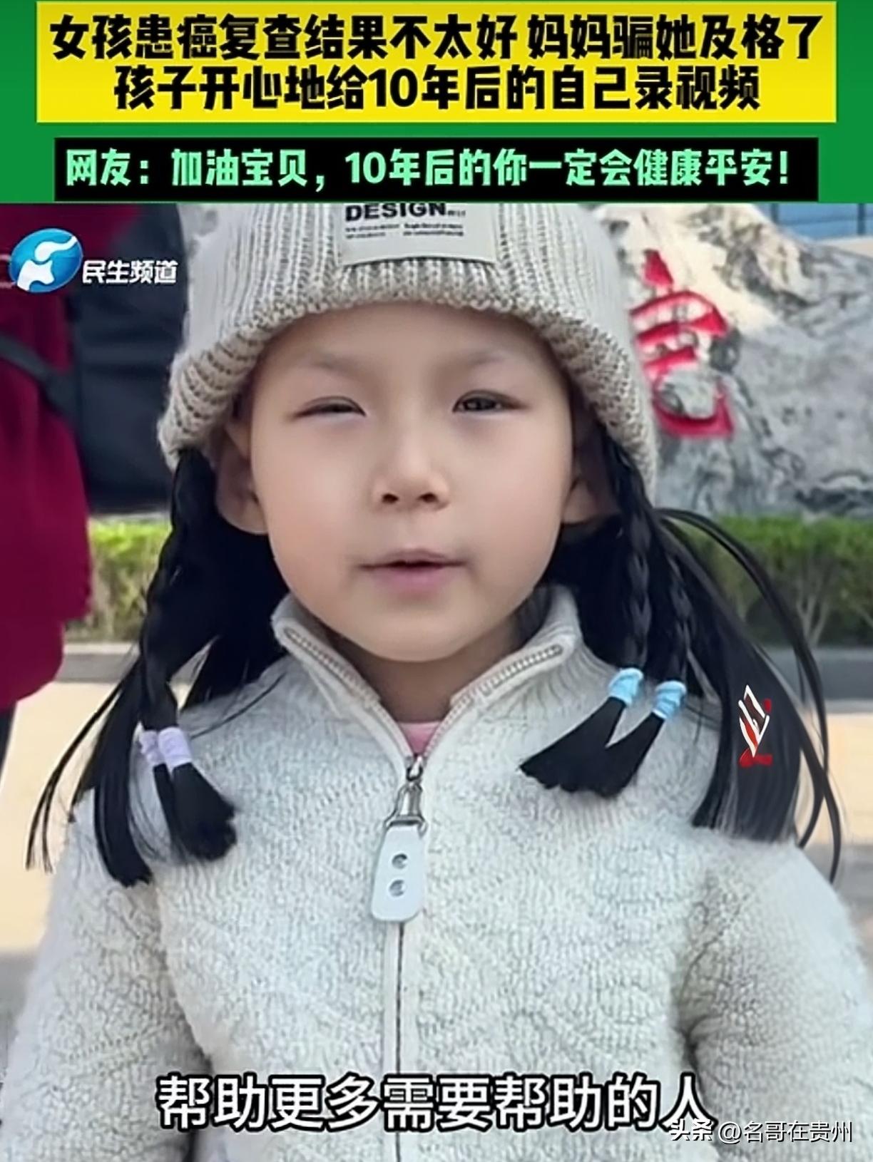 “妈妈骗我及格了”:患癌女孩的笑容,看哭全网! 刷视频的时候,突然就被这个画面整破防了。 说的是重庆的一位妈妈,带着自己患癌的小女儿去医院复查。孩子嘛,满心期待,以为这次能听到“好了”“没事了”这种好消息。可现实呢?检查结果并不理想 。 大家设想一下那个场景,妈妈拿到报告单的那一刻,天都快塌了。据说她一个人在厕所里哭了很久,眼睛都哭肿了 。但是,当她擦干眼泪走出厕所,面对女儿那双充满期待的眼睛时,这位妈妈没有崩溃,也没有说实话。 她做了什么? 她轻轻摸着女儿的头,嘴角挤出一个温柔的笑,说:“宝贝,你及格了。” 就这么简简单单一句话,小女孩瞬间就笑开了花!她立马拿起手机,对着镜头,开开心心地给10年后的自己录视频。在那孩子的眼里,她根本不知道“及格”背后的残酷含义,她只知道妈妈笑了,妈妈说我及格了,那就是好事,那就是我闯过这一关了。 看着那个小女孩对着镜头比划,笑得那么纯粹、那么明亮,眼里全是对未来的憧憬,再看着镜头后面那个虽然笑着、但早已悄悄红了眼眶的妈妈……这种反差,真的太戳心了。 我们常说“善意的谎言”,这大概就是世间最温柔、也最让人心疼的一种吧。 妈妈用一句“及格了”,小心翼翼地把所有的恐惧和心酸都嚼碎了咽进肚子里,她守护的不是分数,而是孩子那颗纯真的心和活下去的希望。而那个小小的她,虽然承受着病痛的折磨,却用最灿烂的笑容,反过来治愈了妈妈,也治愈了我们这些陌生人。 病痛真的很无情,它把一个家庭推向了深渊。但在深渊里,我们看到了亲情这根救命绳索,它坚韧、温暖,永远发着光。 真的特别心疼这个勇敢的小姑娘,也特别敬佩这位伟大的妈妈。 在这里,我想邀请每一个看到这里的你,咱们一起在评论区为这个小女孩点上一个“加油”,或者送上一个大拇指。愿所有的善良都被温柔以待,愿这个可爱的小女孩,真的能如约见到10年后那个健康、快乐、长大了的自己! (作者申明:内容取材于网络,根据鲁网官方账号报道的真实事件整理,愿世间无病痛,为小女孩祈福。)